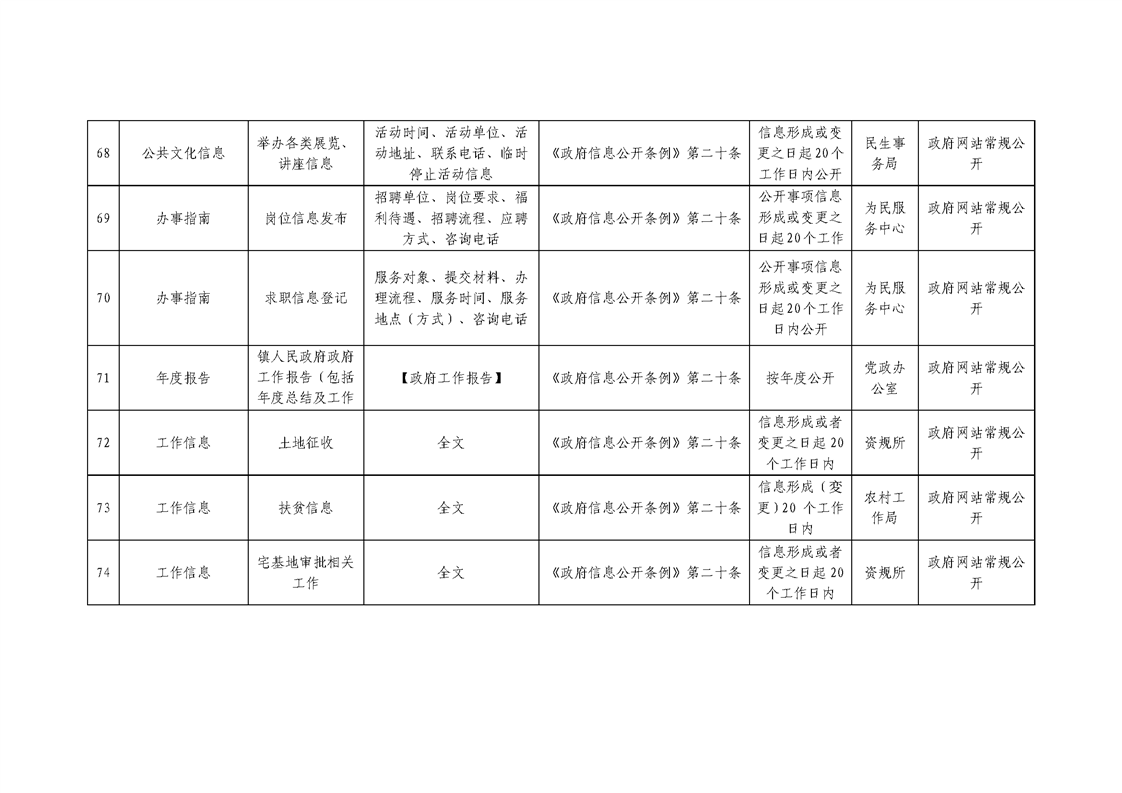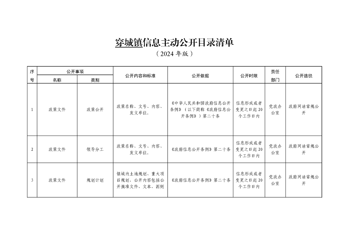 穿城鎮政府信息主動公開目錄清單(2024年)