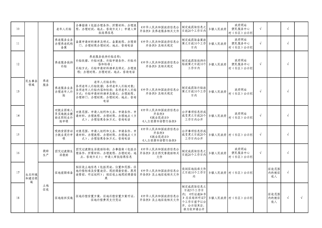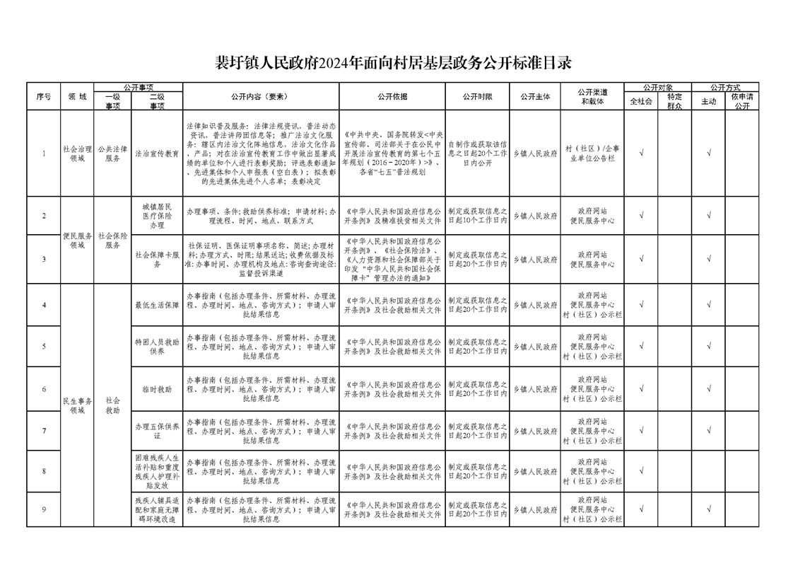 裴圩鎮人民政府面向村居基層政務公開標準目錄(2024年)