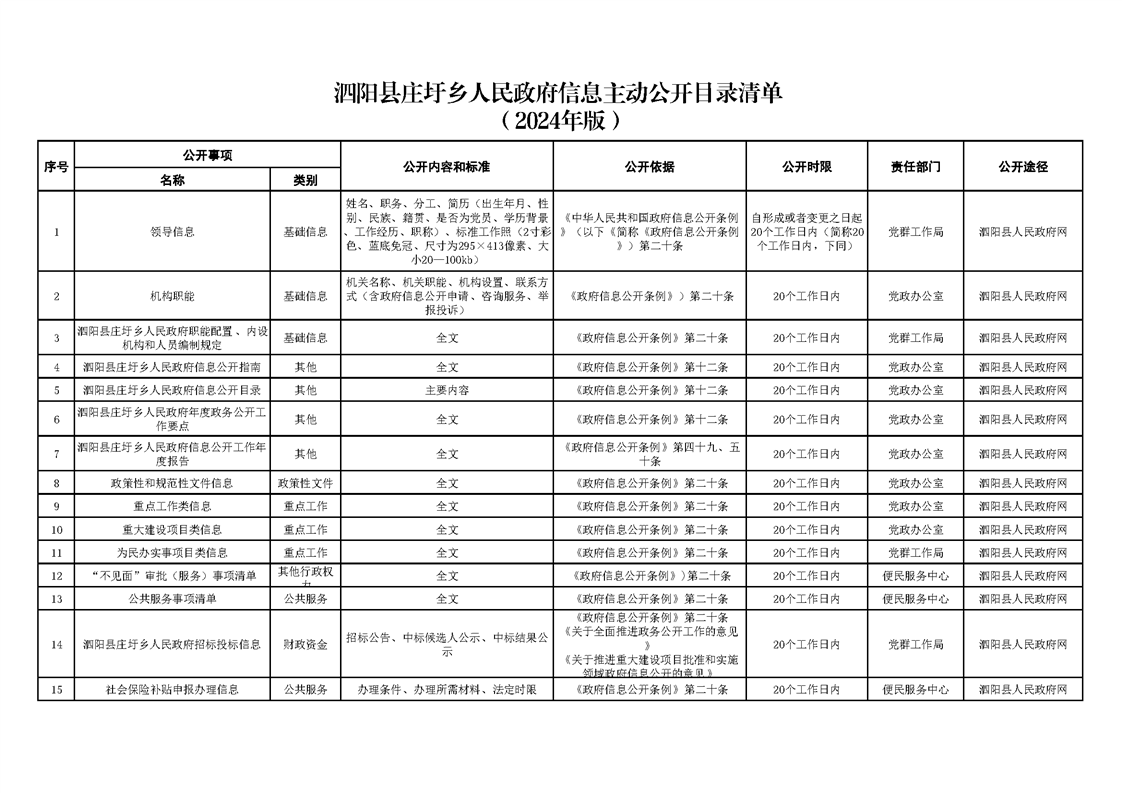 莊圩鄉政府信息主動公開目錄清單(2024年)