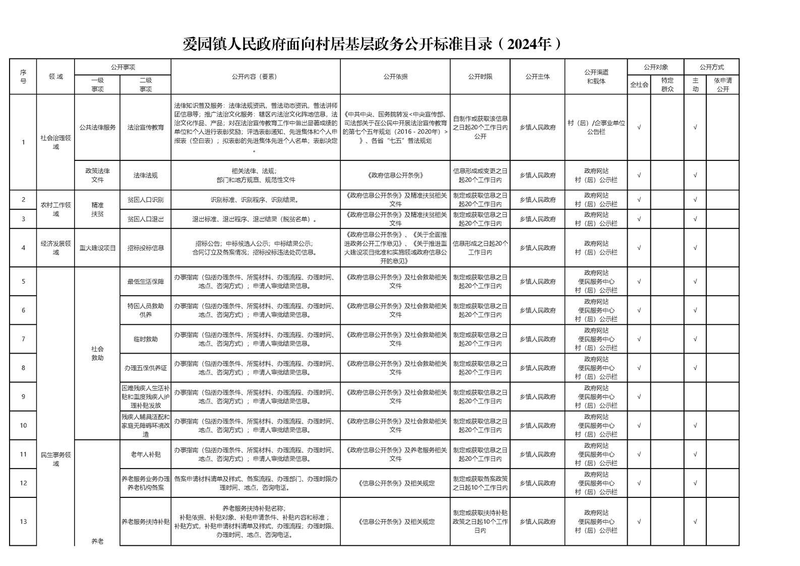 愛園鎮(zhèn)人民政府面向村居基層政務(wù)公開標(biāo)準(zhǔn)目錄(2024年)