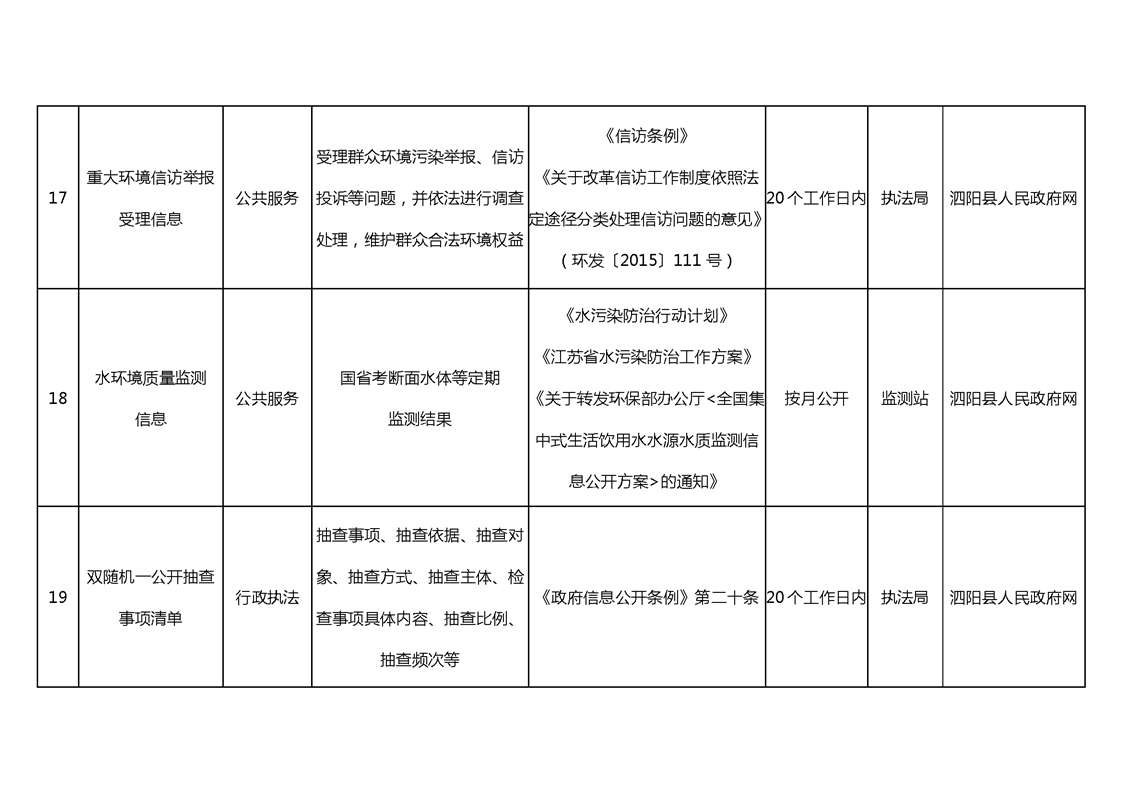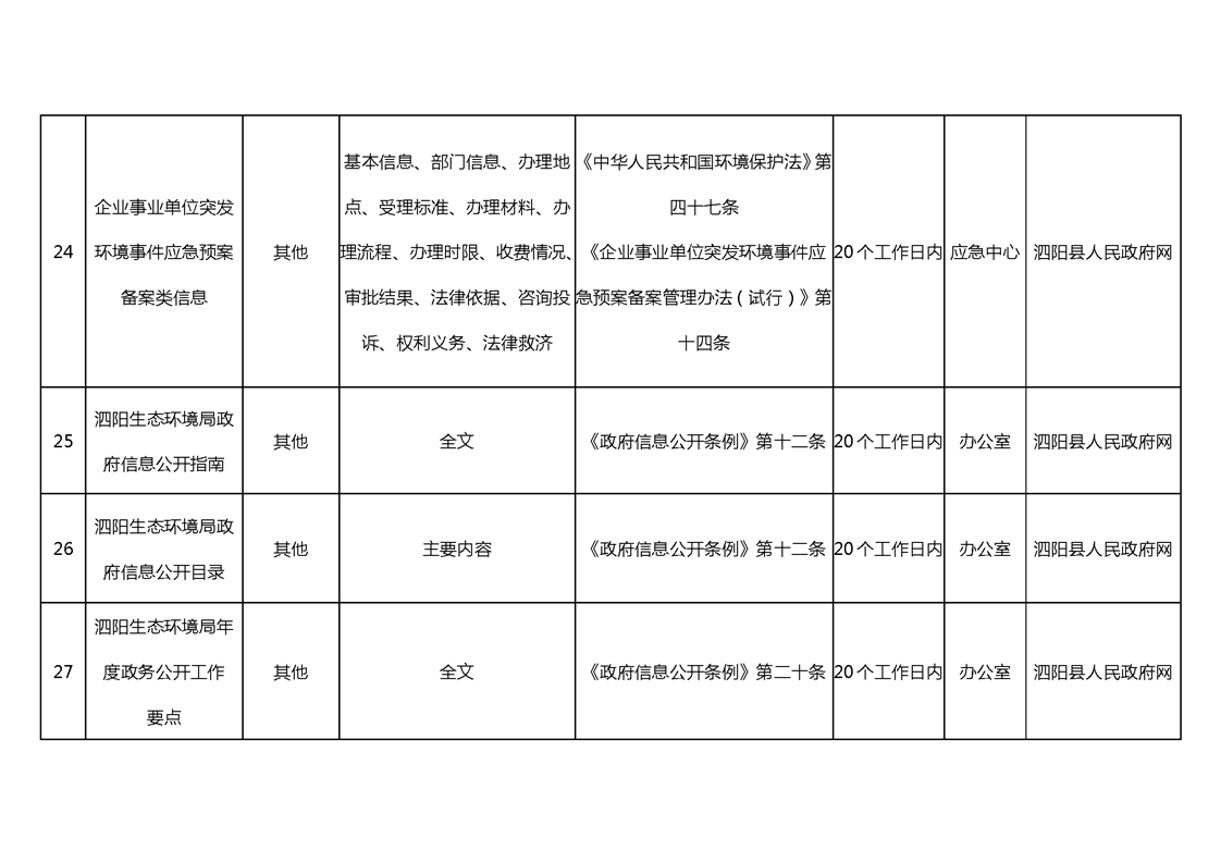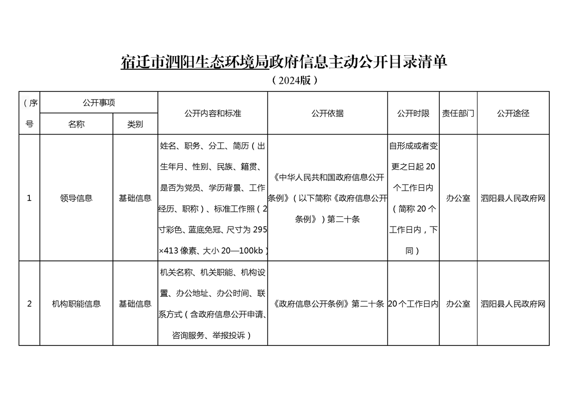 宿遷市泗陽生態環境局政府信息主動公開目錄清單(2024年)
