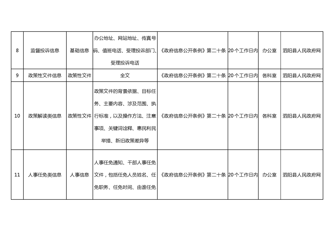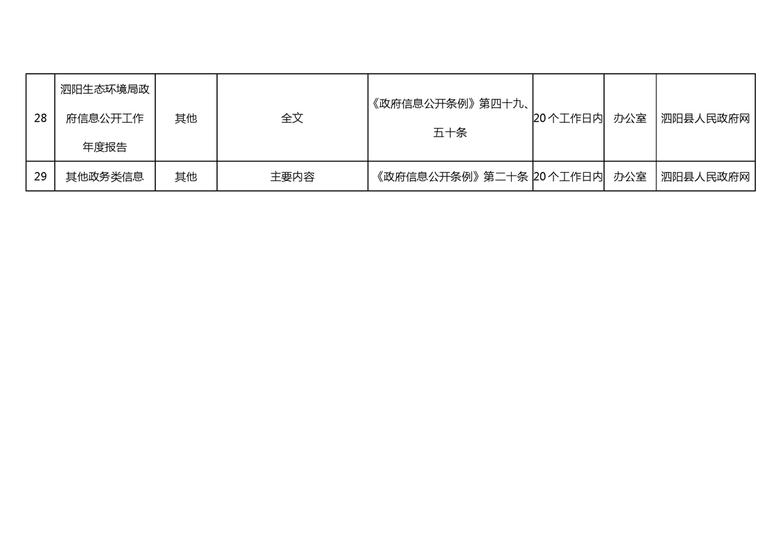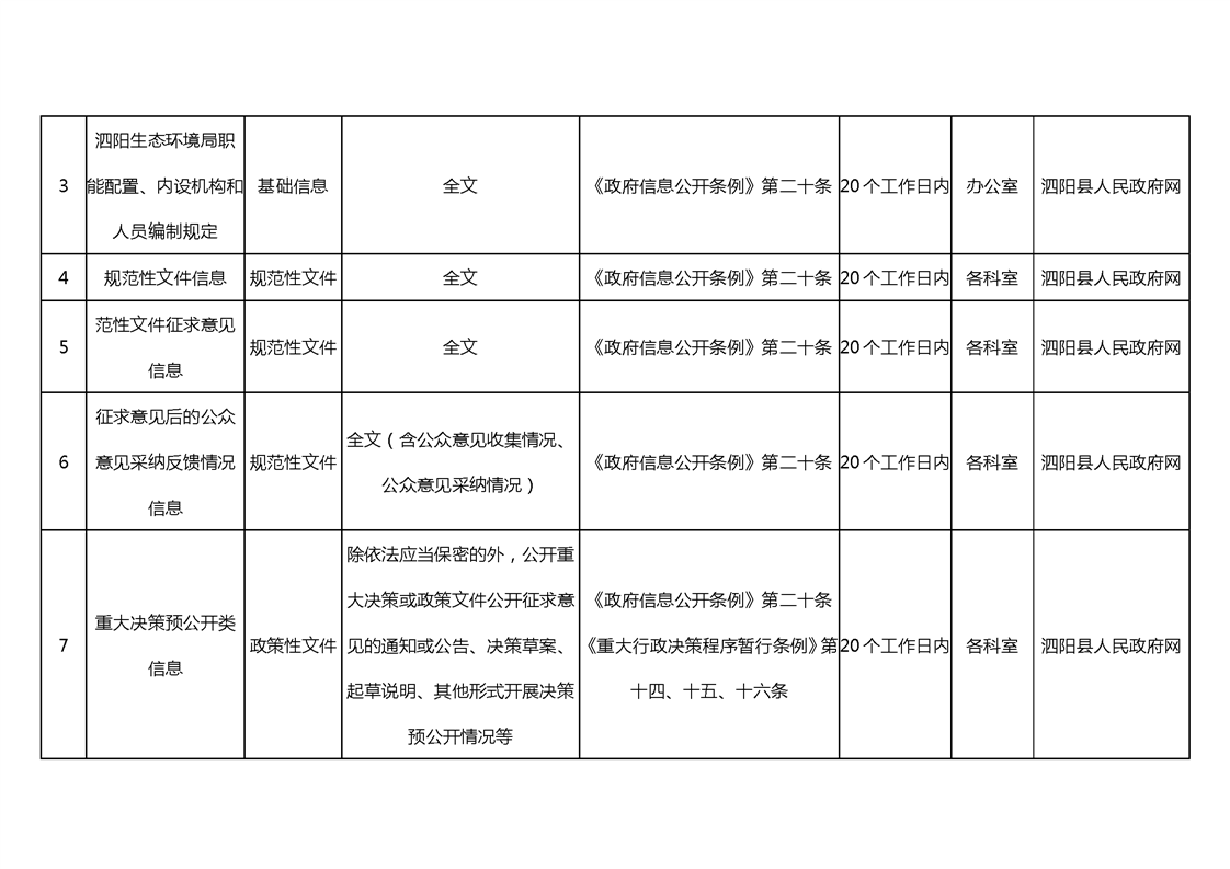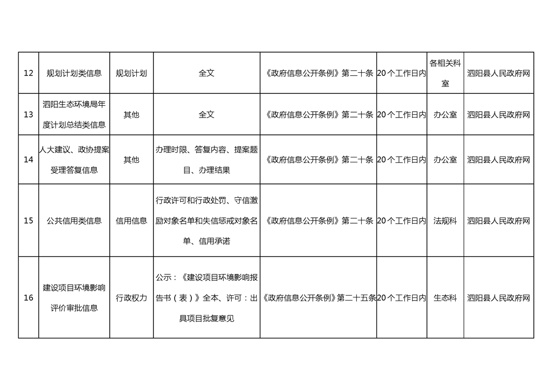 宿遷市泗陽生態環境局政府信息主動公開目錄清單(2024年)