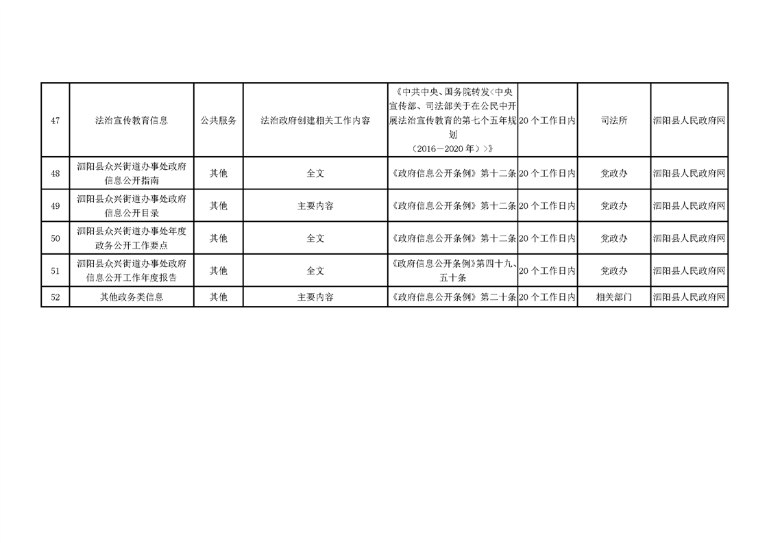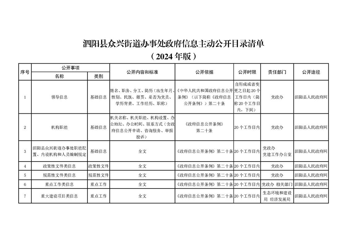 眾興街道辦事處政府信息主動公開目錄清單(2024年)