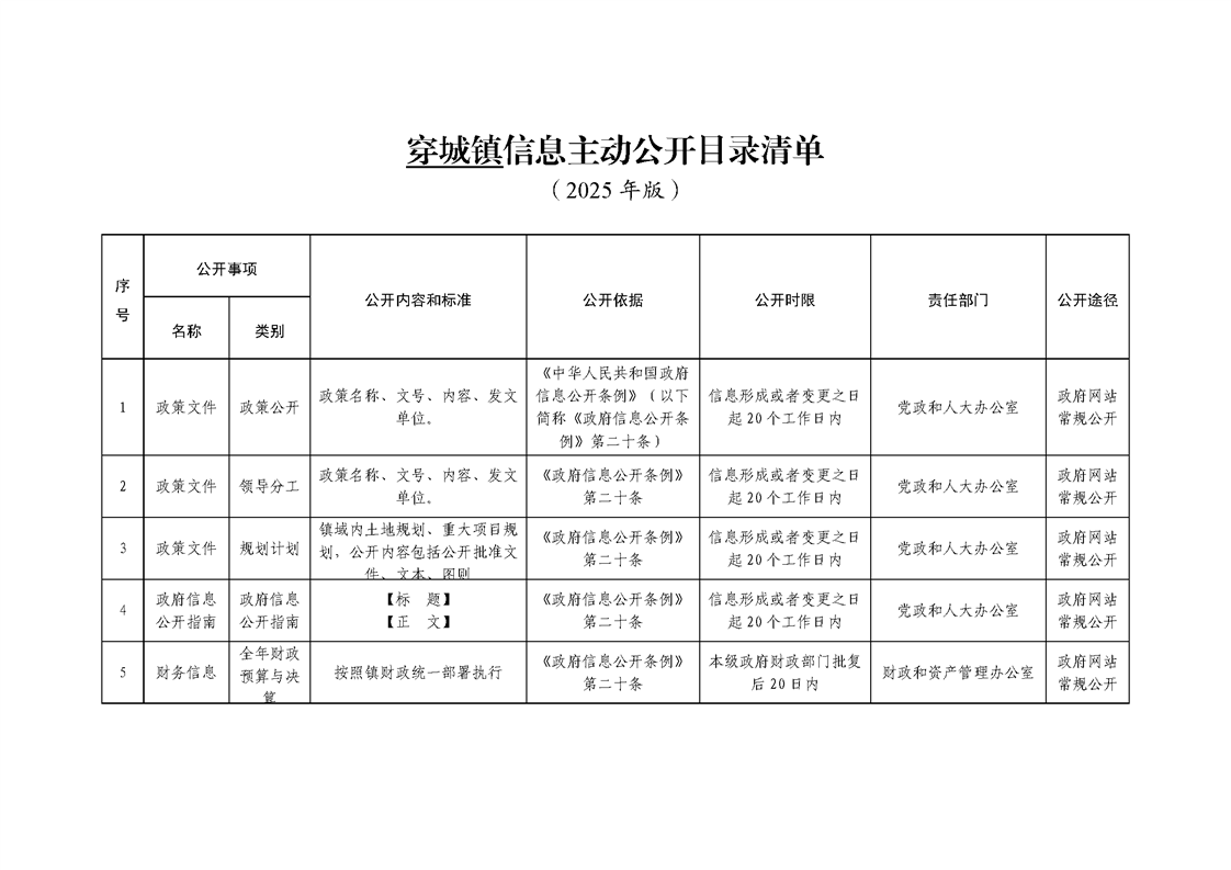 泗陽縣穿城鎮政府信息主動公開目錄清單(2025年版)
