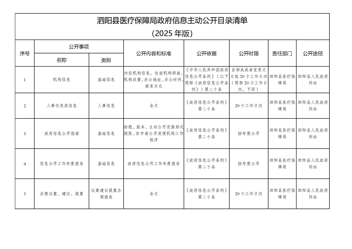 泗陽縣醫療保障局政府信息主動公開目錄清單(2025年版)