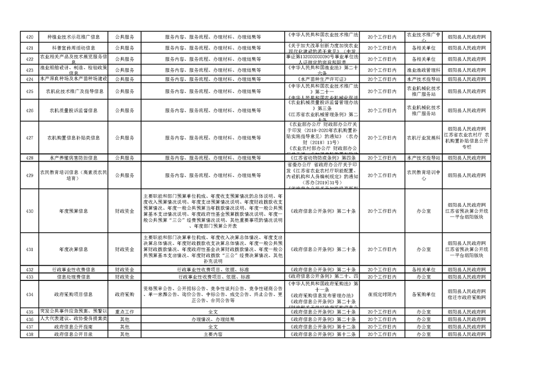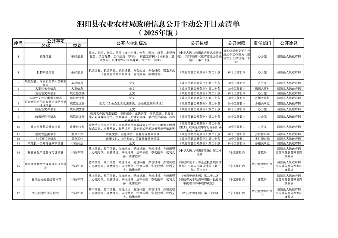 泗陽縣農業農村局政府信息主動公開目錄清單(2025年版)