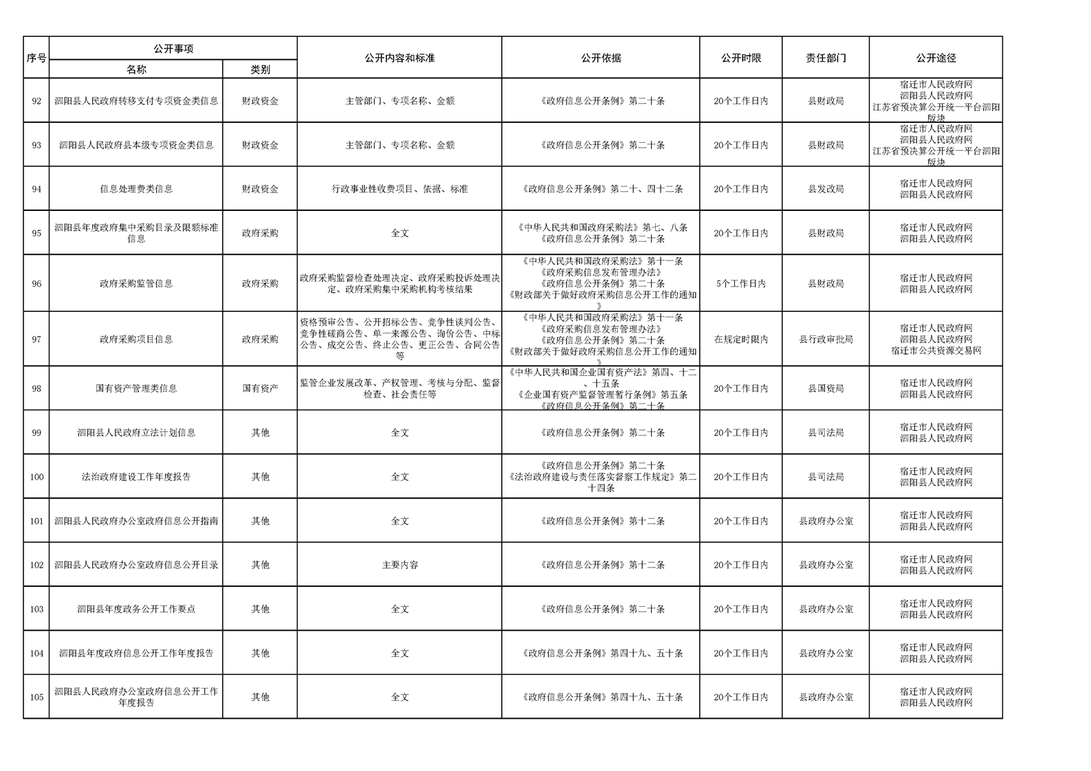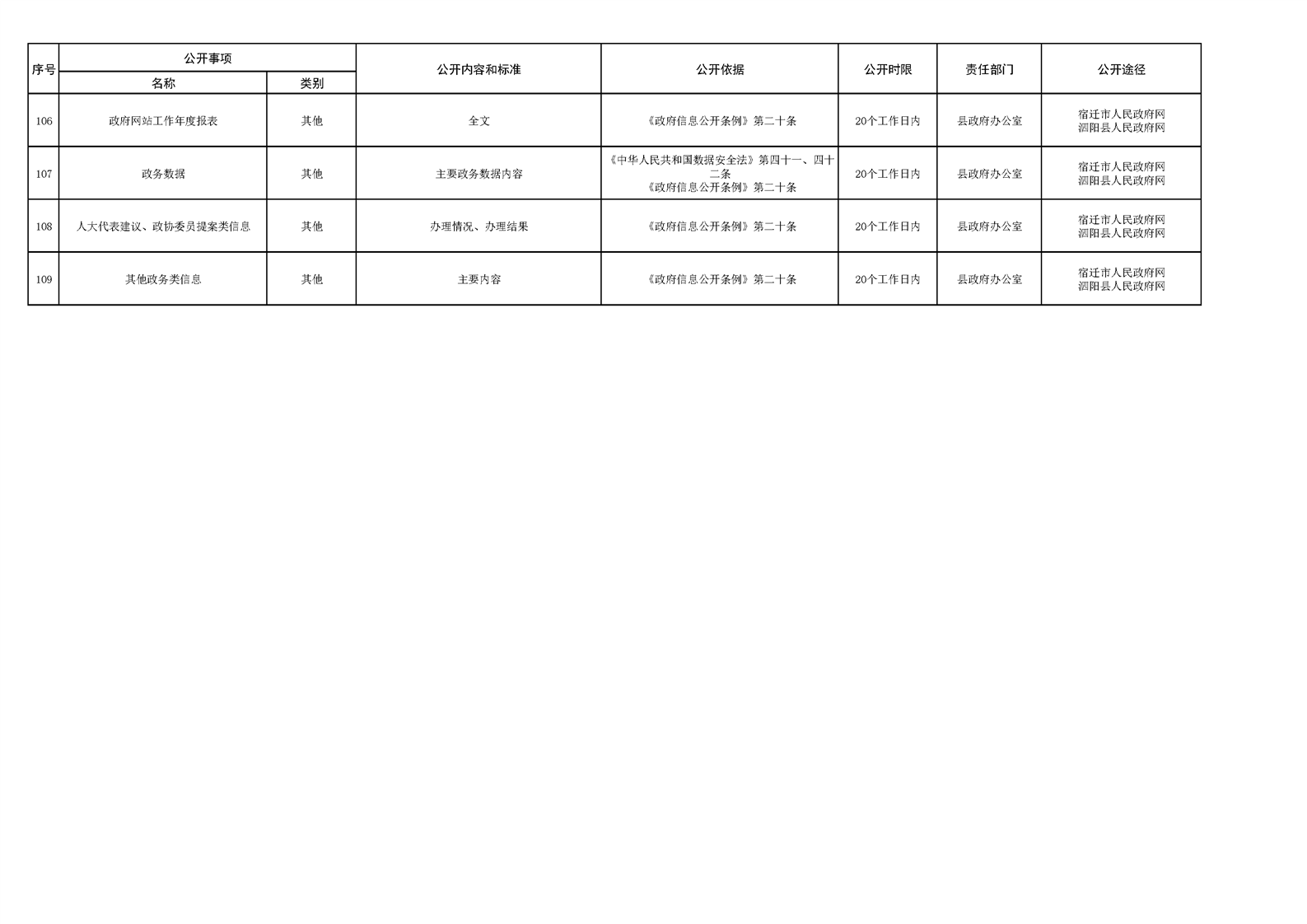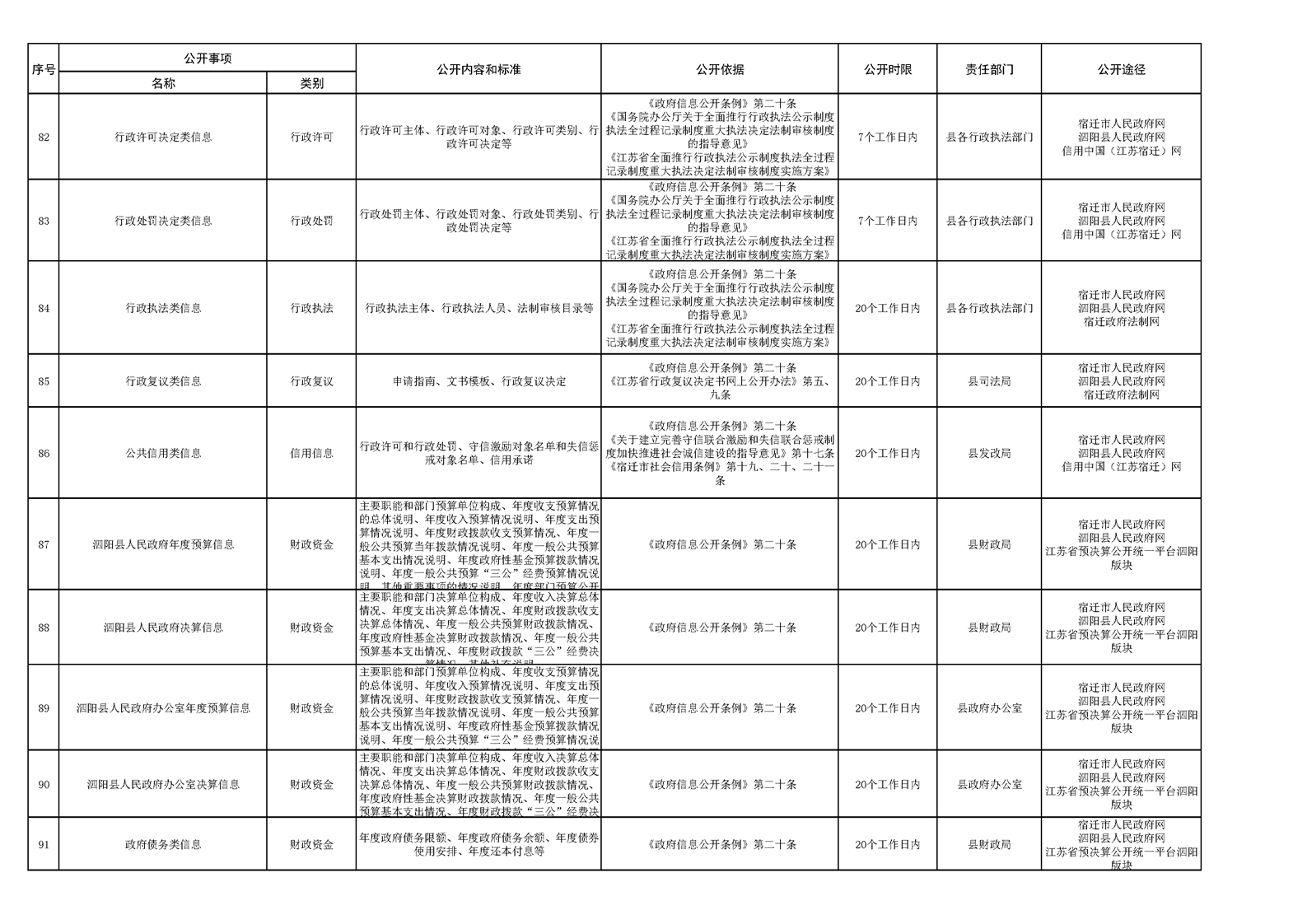 泗陽縣人民政府及辦公室政府信息主動公開目錄清單(2025年版)