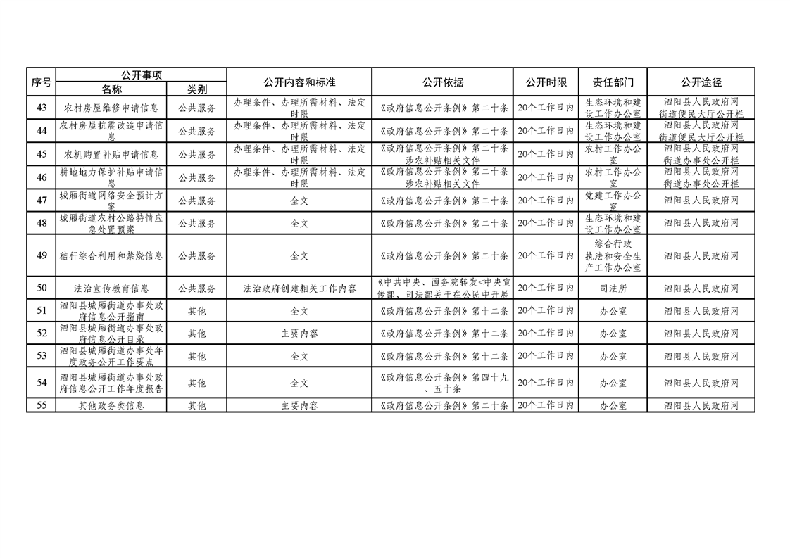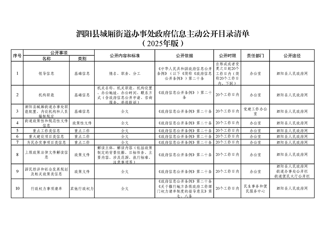 泗陽縣城廂街道政府信息主動公開目錄清單(2025年版)