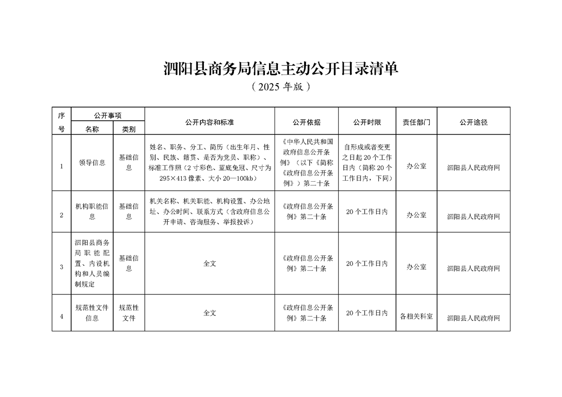 泗陽縣商務(wù)局政府信息主動公開目錄清單(2025年版)