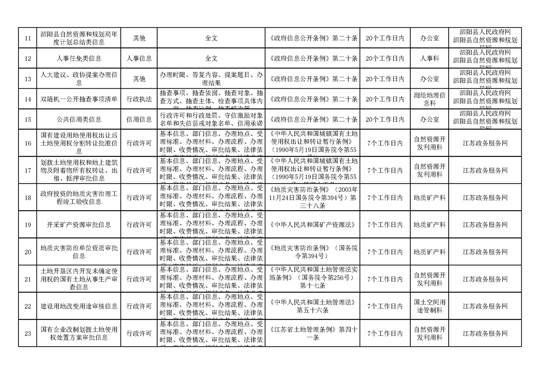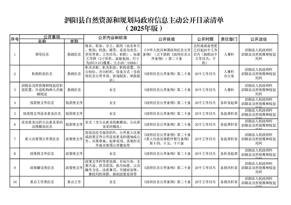 泗陽縣自然資源和規(guī)劃局政府信息主動(dòng)公開目錄清單(2025年版)