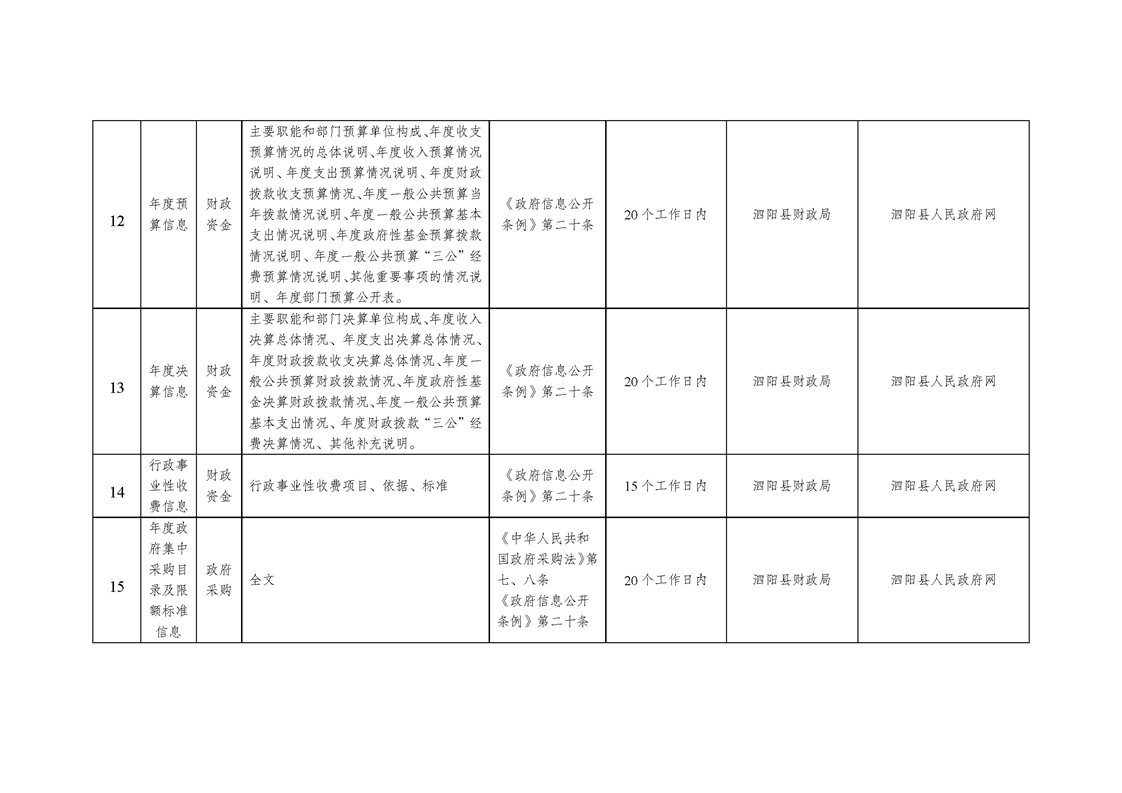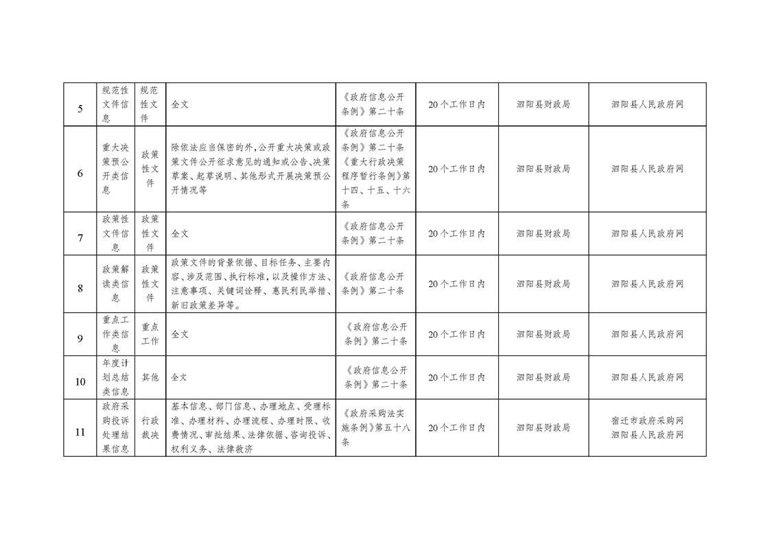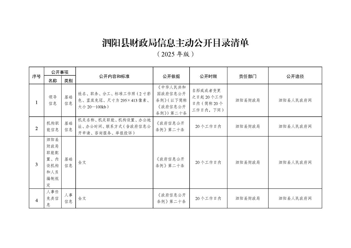 泗陽縣財政局政府信息主動公開目錄清單(2025年版)