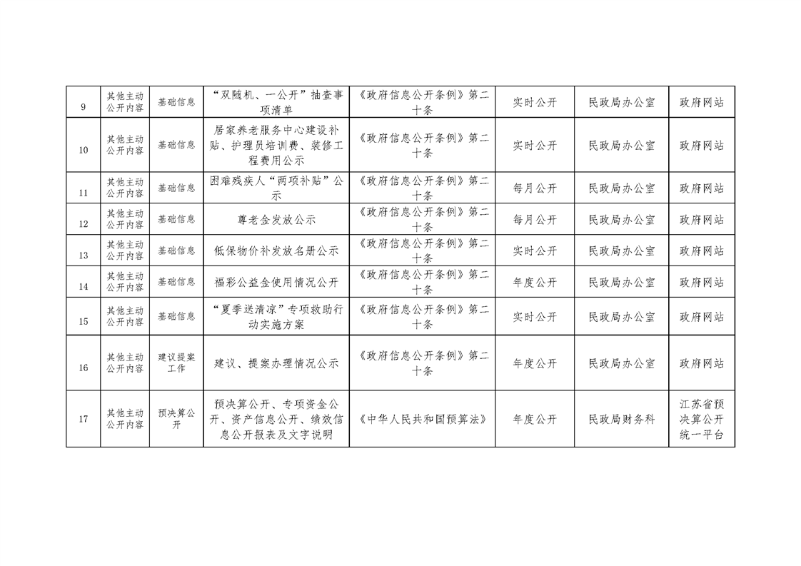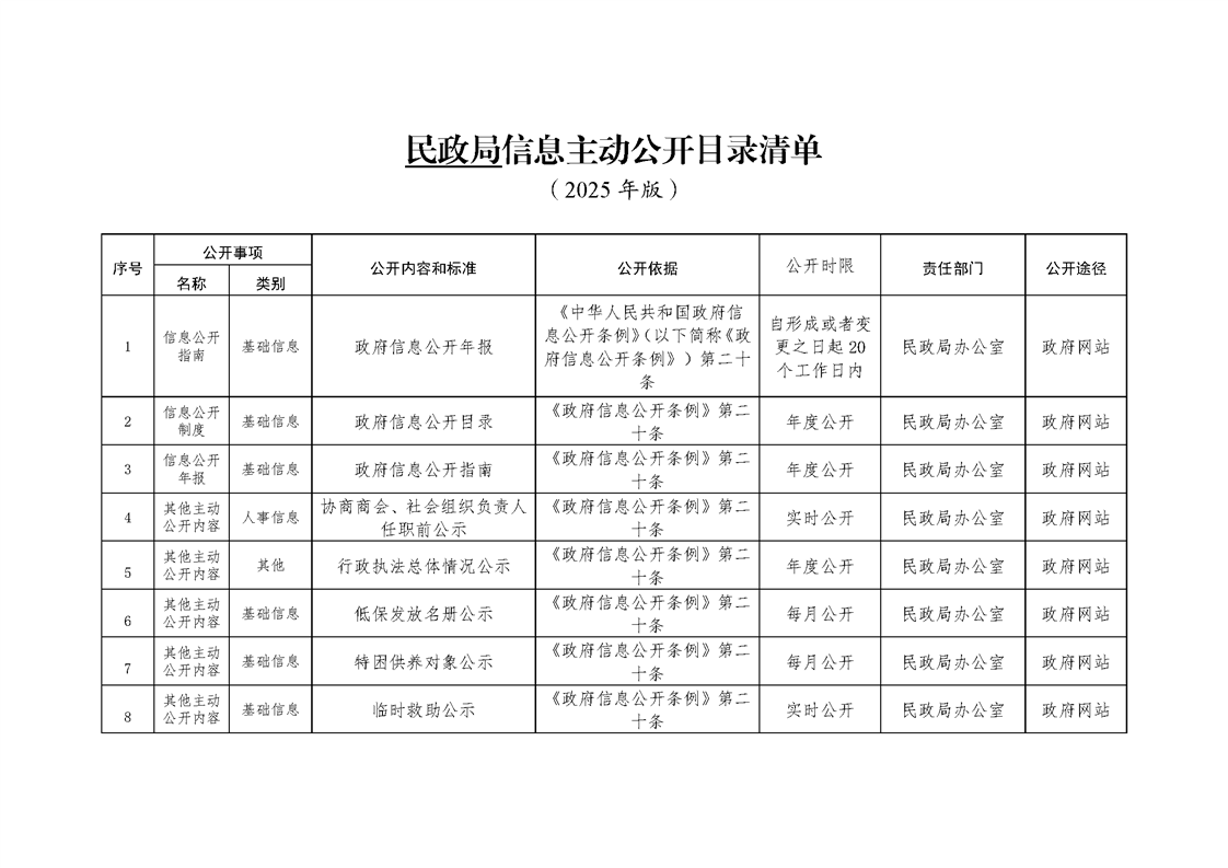 泗陽(yáng)縣民政局政府信息主動(dòng)公開(kāi)目錄清單(2025年版)