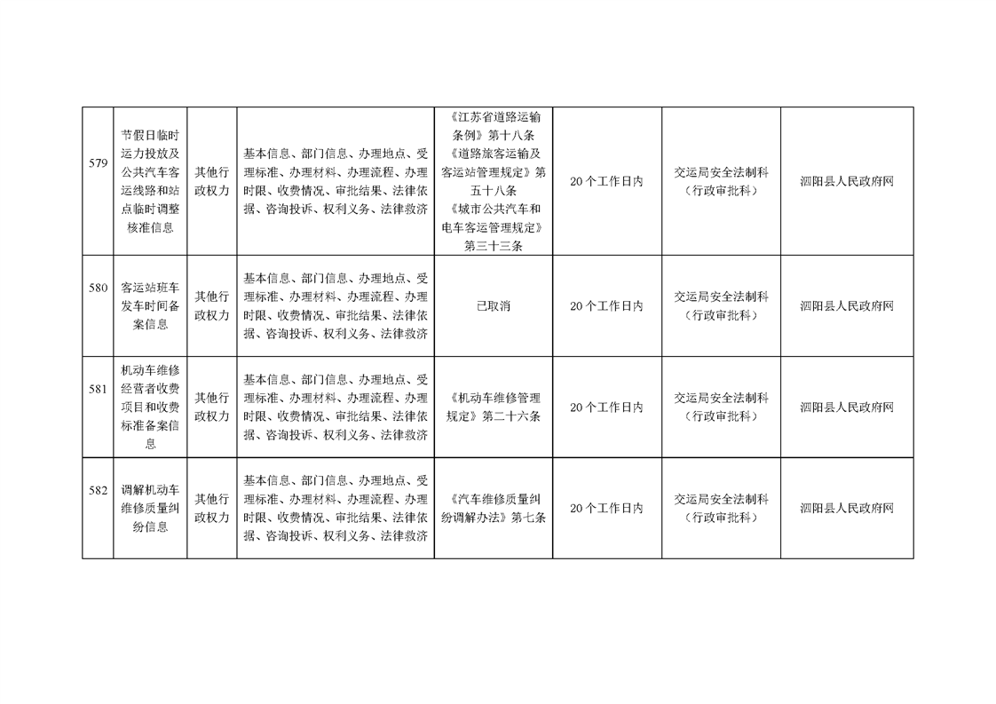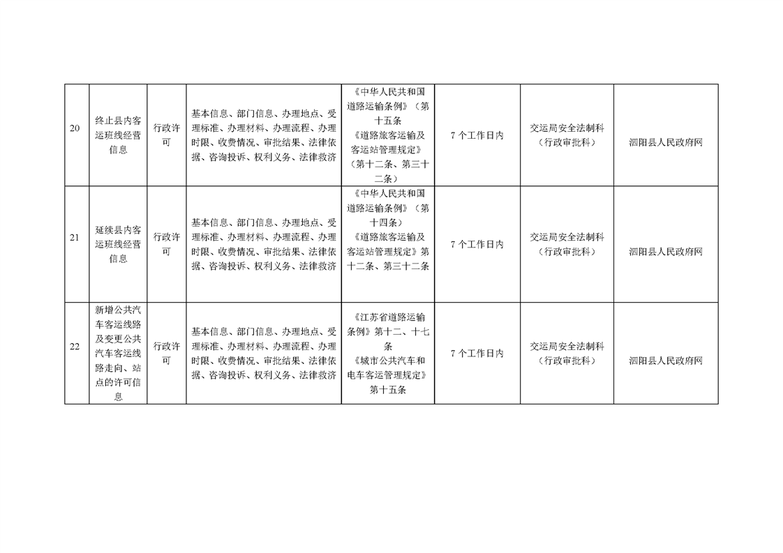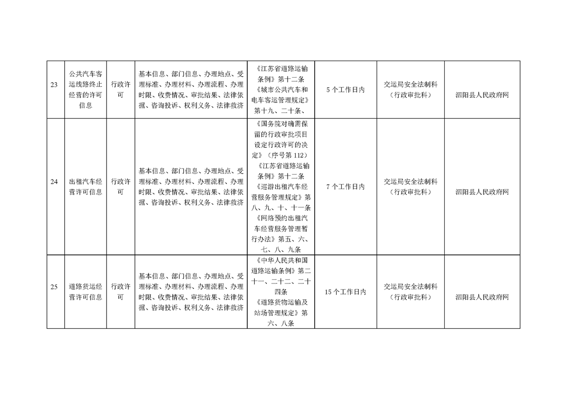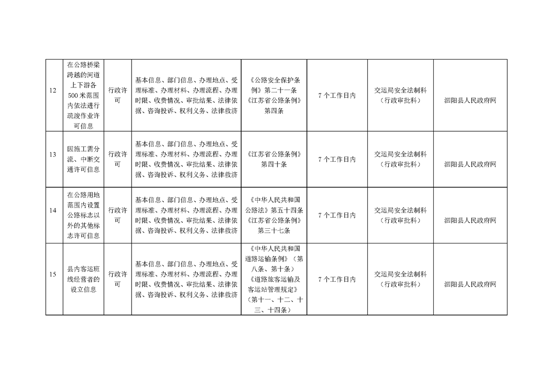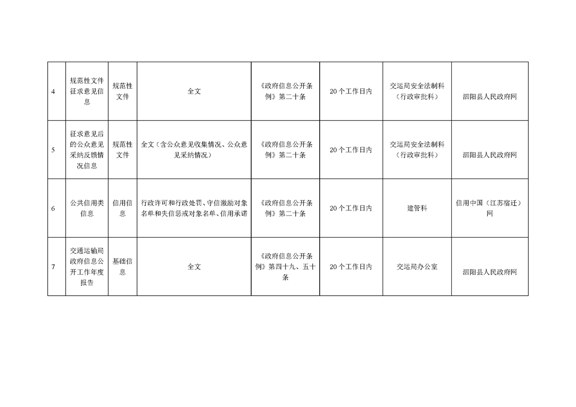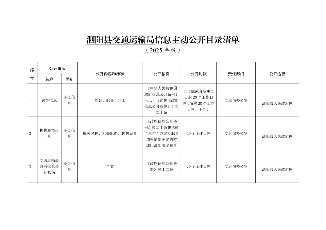 泗陽縣交通運輸局政府信息主動公開目錄清單(2025年版)