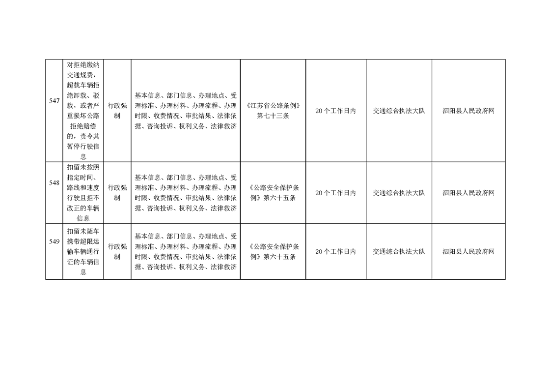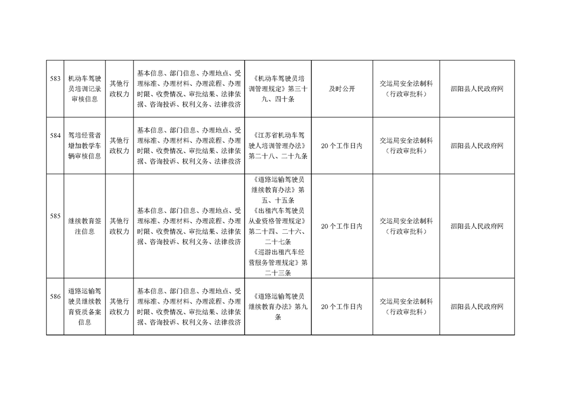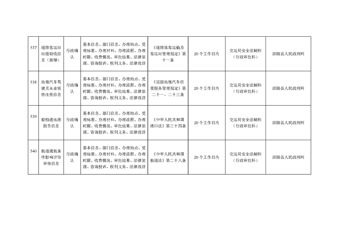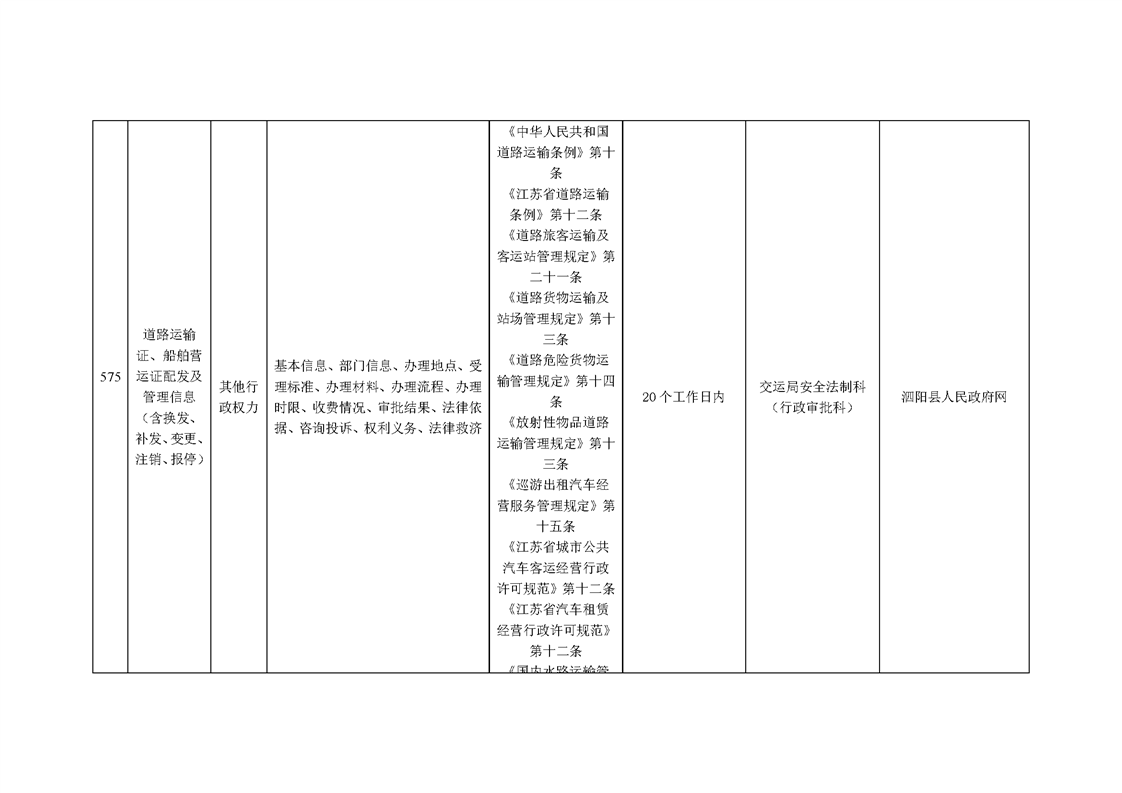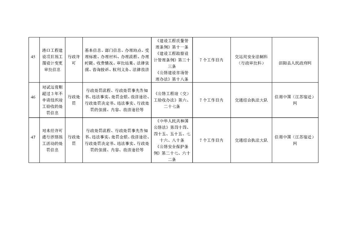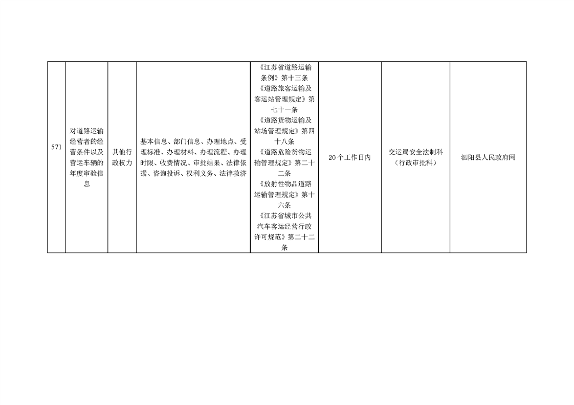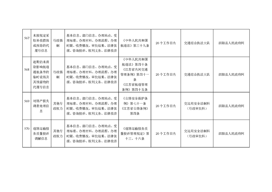 泗陽縣交通運輸局政府信息主動公開目錄清單(2025年版)
