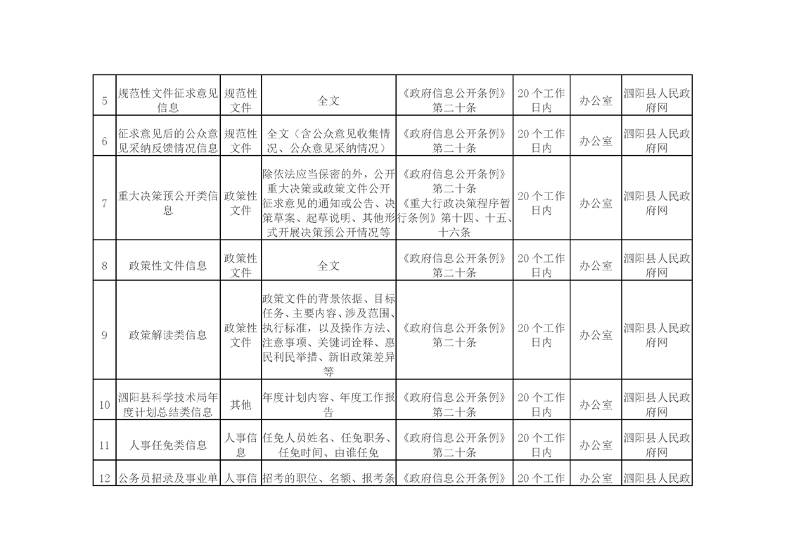 泗陽縣科技局政府信息主動公開目錄清單(2025年版)