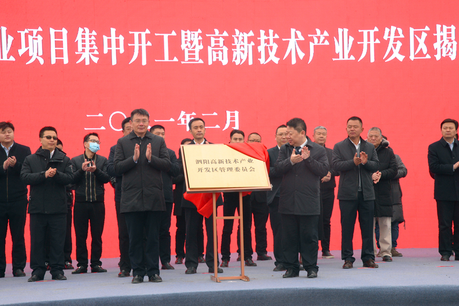 儀式上,徐勤忠與鄭干先共同為泗陽高新技術產業開發區黨委揭牌,毛峰與副縣長張祥瑞共同為泗陽高新技術產業開發區管委會揭牌。高新技術產業開發區,臨河鎮以及企業代表分別進行了發言。