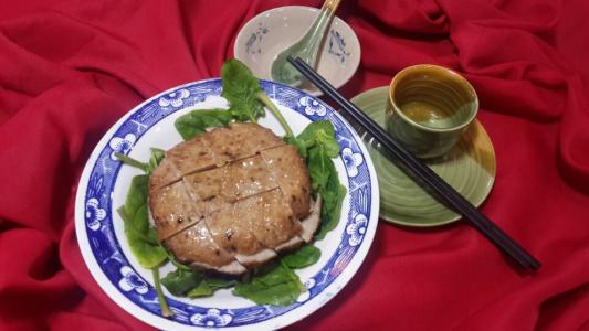 膘雞是泗陽著名特產(chǎn)之一。農(nóng)家婚喪喜慶,多以膘雞作為“頭景”上桌,客人評論廚師手藝如何,也都是以膘雞的制作為標(biāo)準(zhǔn)。膘雞制作相當(dāng)講究,它選用瘦豬肉糊、雞蛋黃、饅頭屑、淀粉,用鹽、蔥、姜、胡椒粉、味精等佐料攪拌均勻,然后攤在百葉上,厚約一寸厚,再用肥豬肉糊與去皮的山藥糊、雞蛋清、蔥白、淀粉等攪拌均勻后攤在其上,厚約半寸。做好后將其放入蒸籠,蒸熟后,上層潔白如玉,下層紅如瑪瑙。一般先改刀成片,配以菠菜、姜蔥等佐料,青、紅、白三色相映,甚是美觀。膘雞上桌,肉香撲鼻,夾而食之,不肥不膩,嬌嫩爽口。