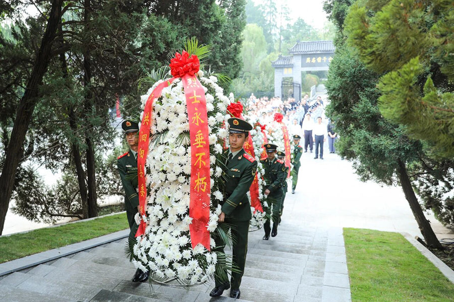 烈士陵園內(nèi),松柏蒼翠挺立,氣氛莊嚴肅穆。縣委書記范德珩,縣委副書記、縣長王光宇,縣人大常委會主任史素珍,縣政協(xié)主席魏國等縣級領(lǐng)導(dǎo)班子全體成員與社會各界代表一起,共同祭奠英烈。縣委副書記、常務(wù)副縣長何川主持儀式。