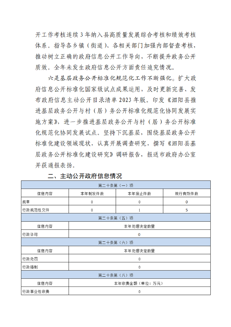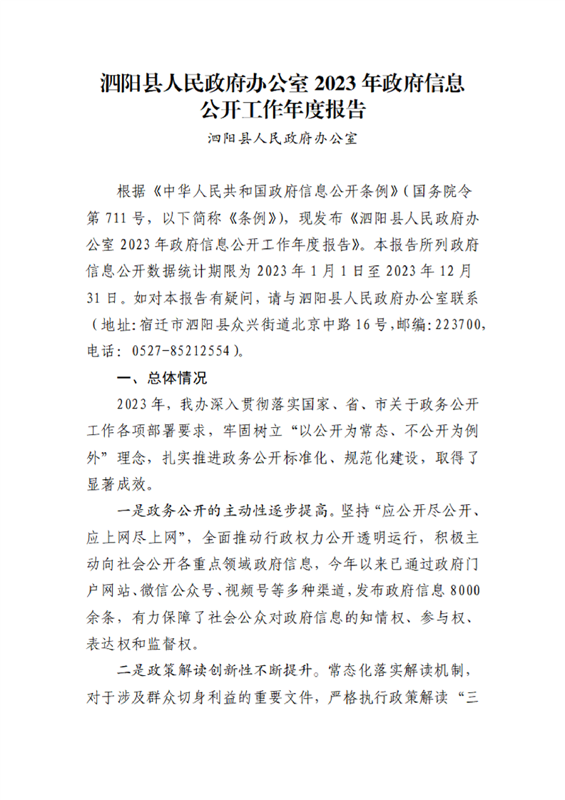 泗陽縣人民政府辦公室2023年政府信息公開工作年度報告