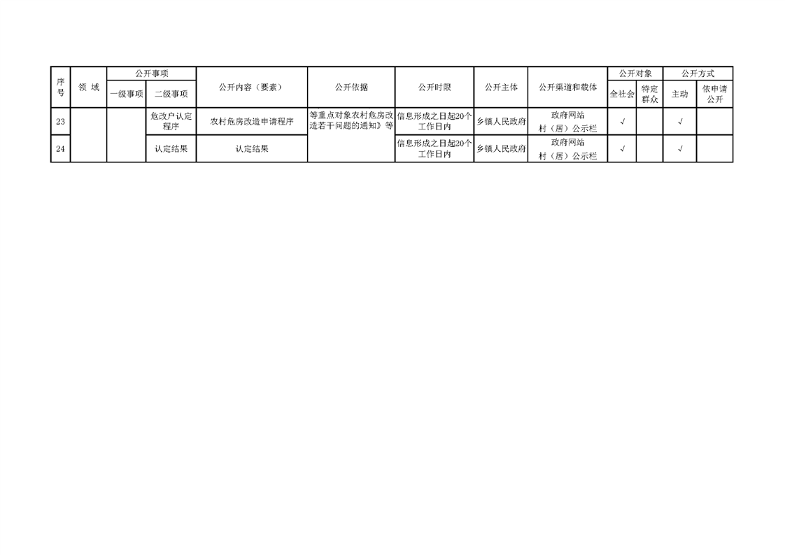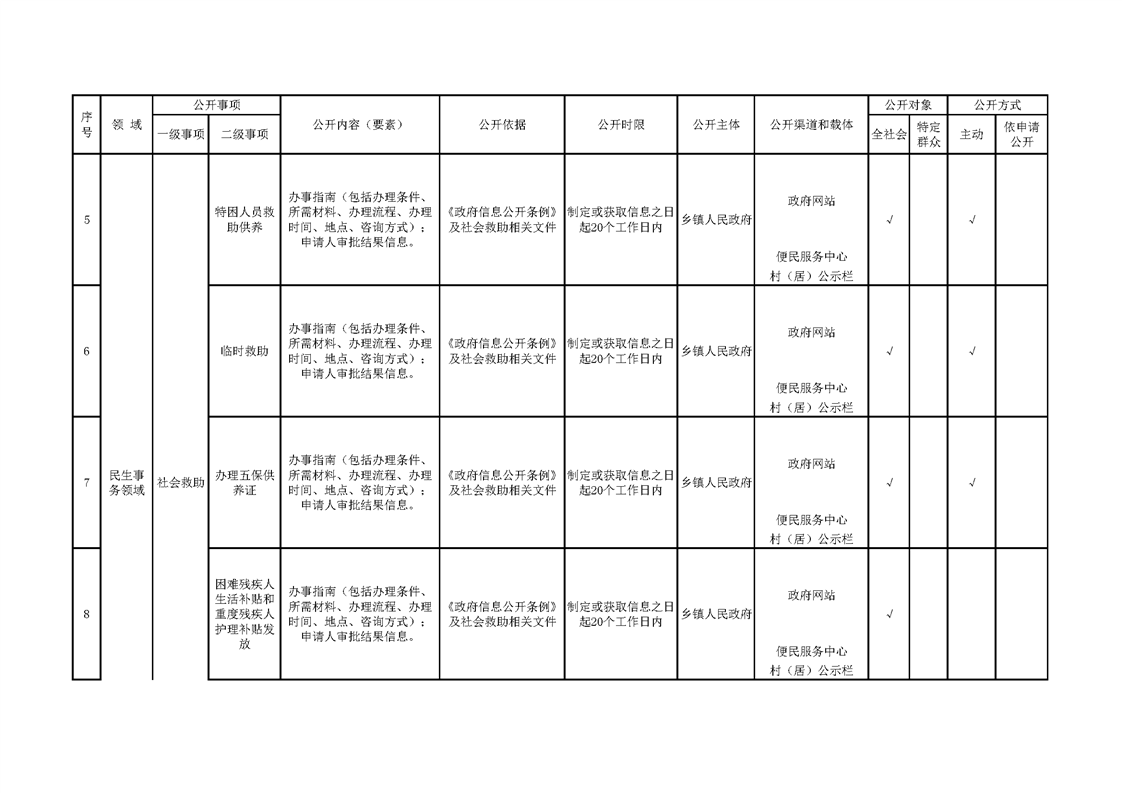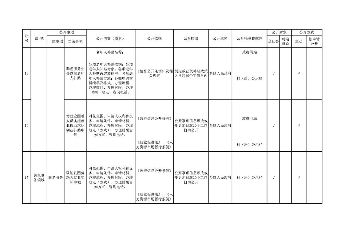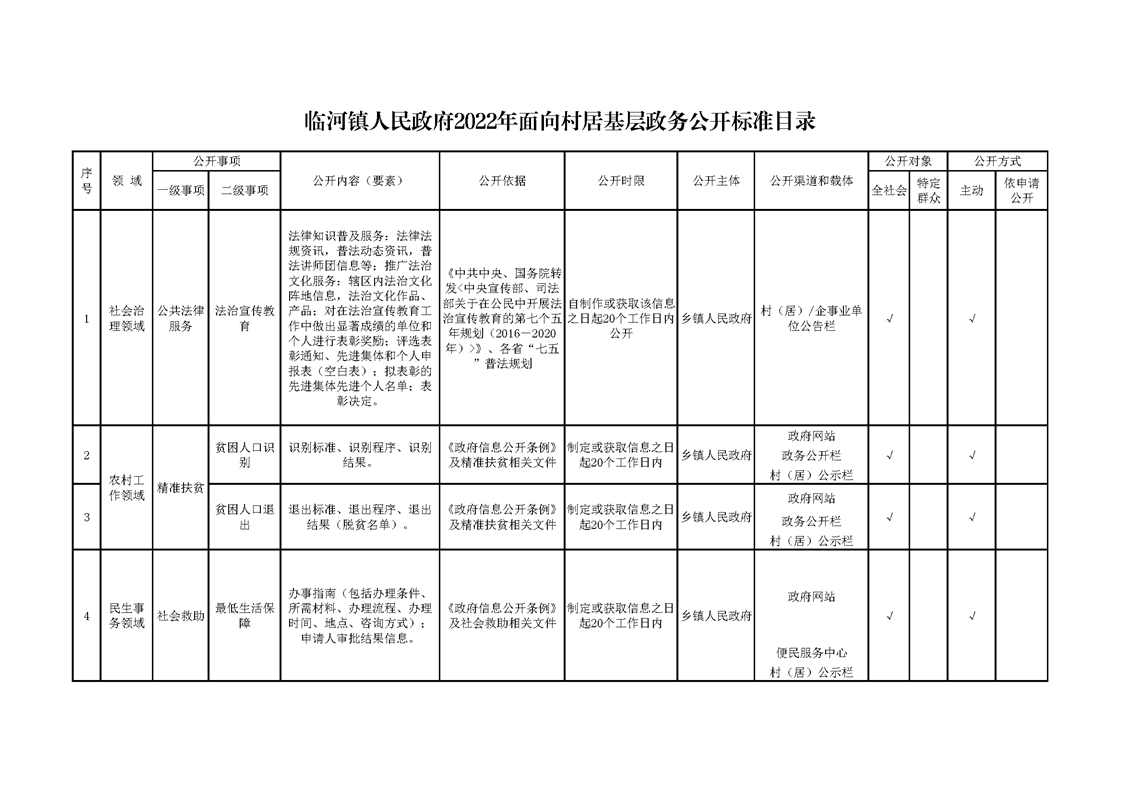 臨河鎮人民政府2022年面向村居基層政務公開標準目錄