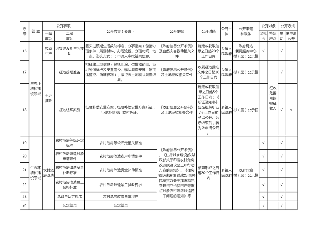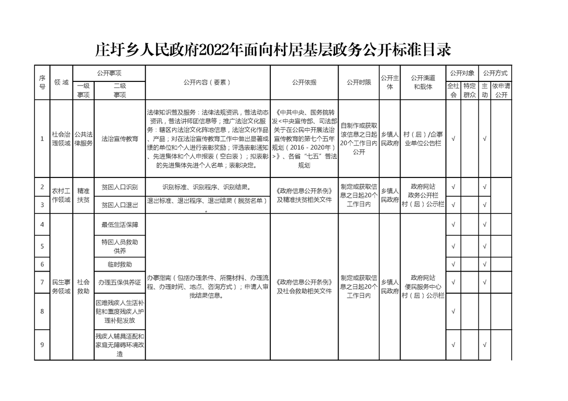莊圩鄉人民政府2022年面向村居基層政務公開標準目錄