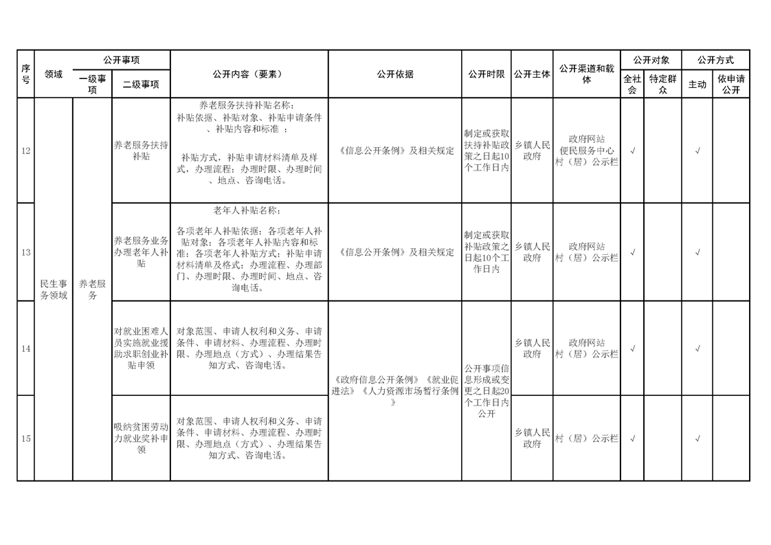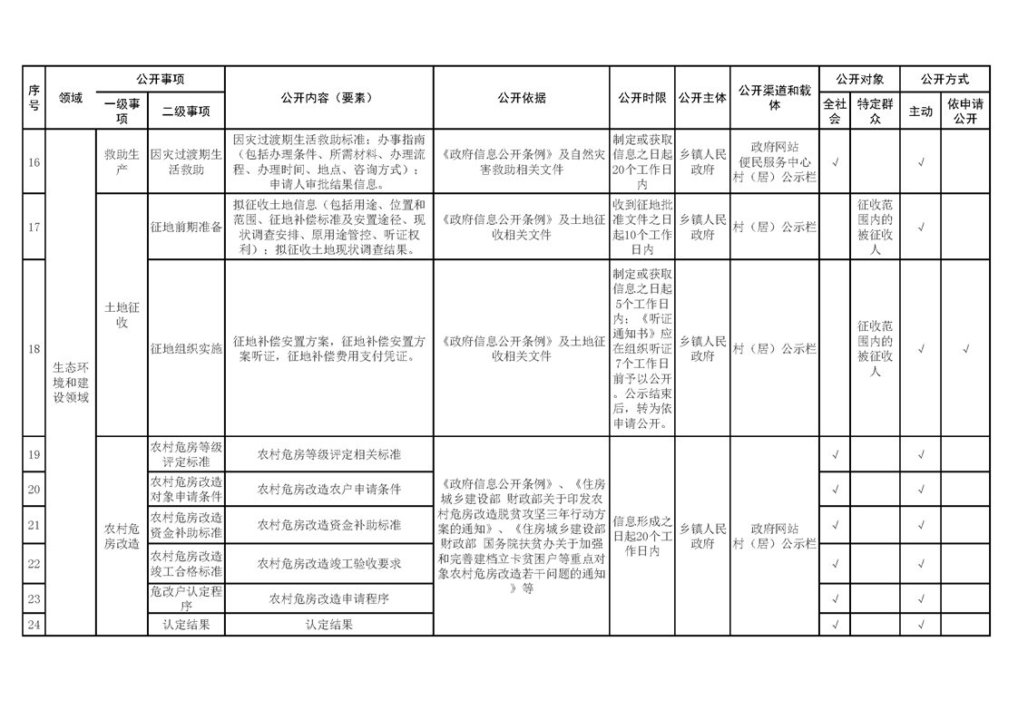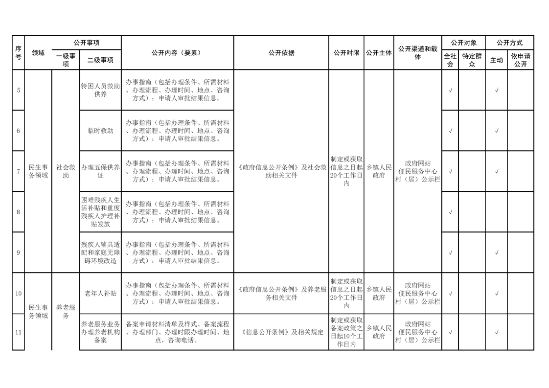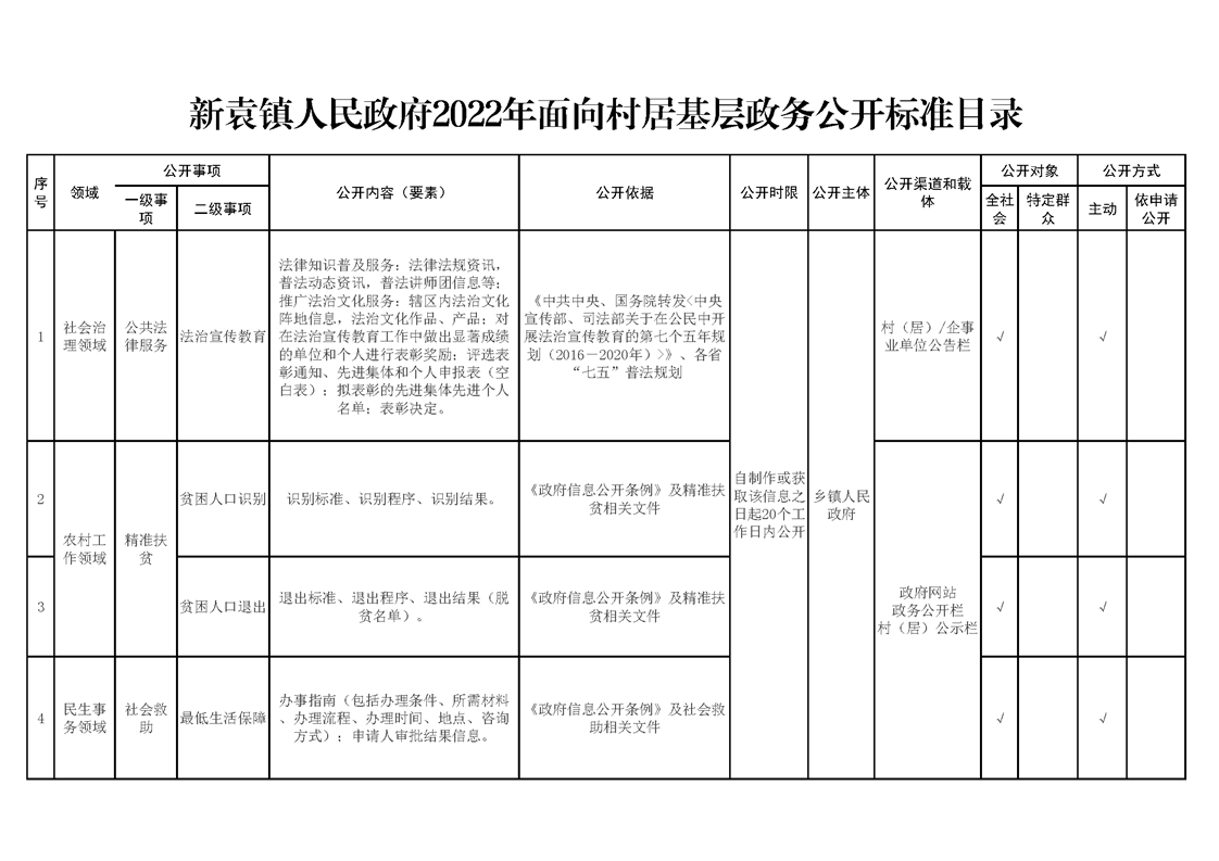 新袁鎮人民政府2022年面向村居基層政務公開標準目錄