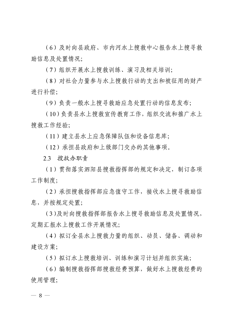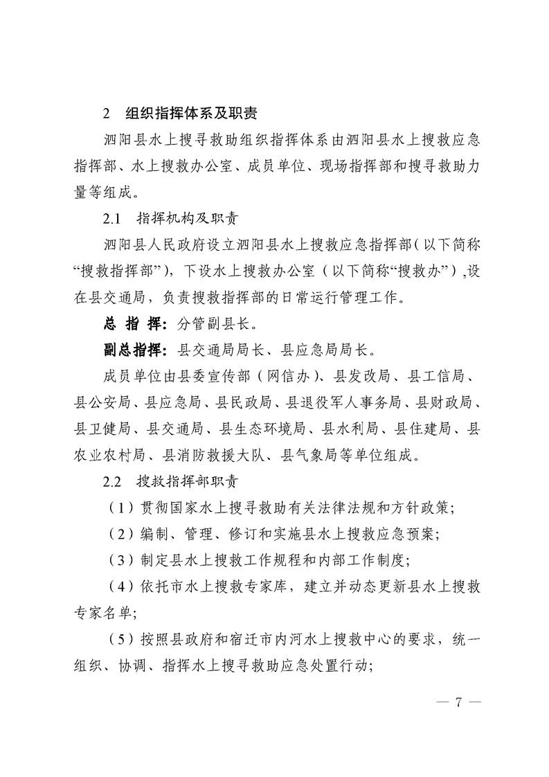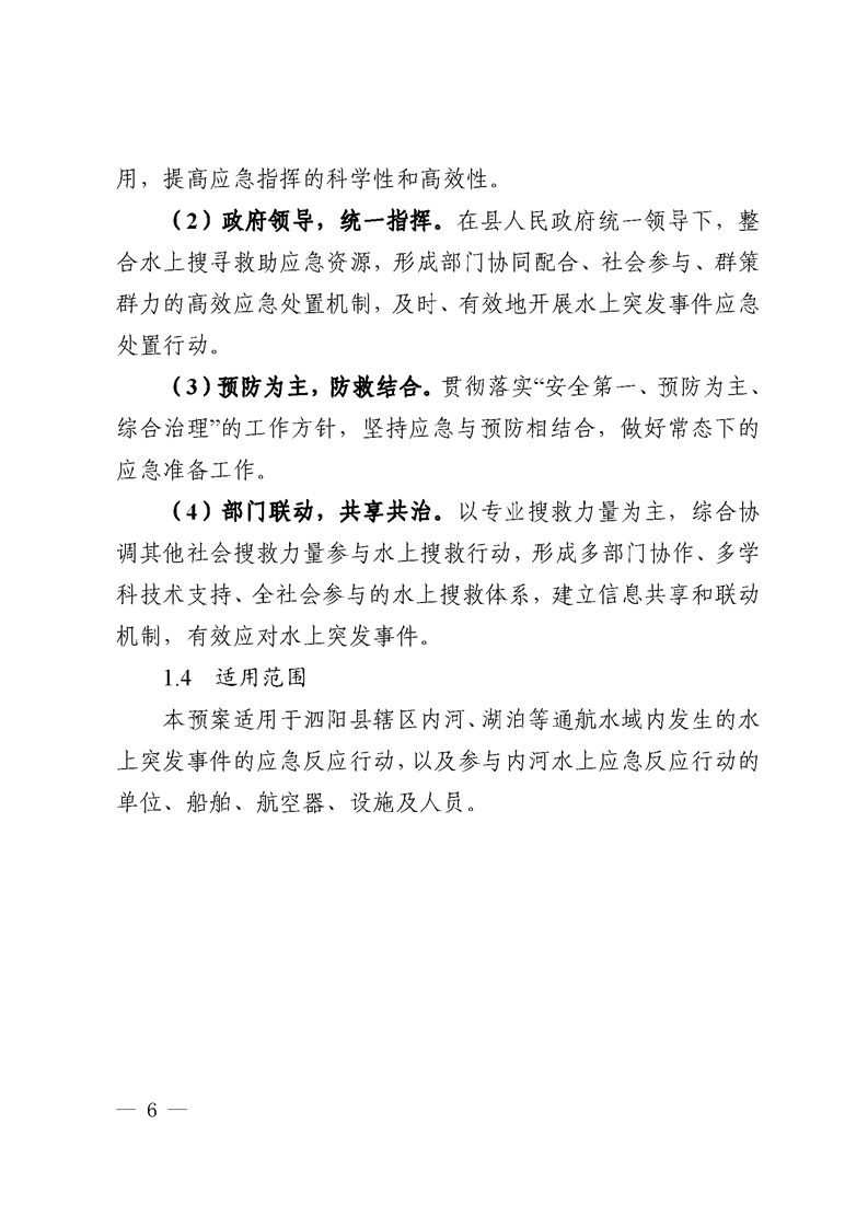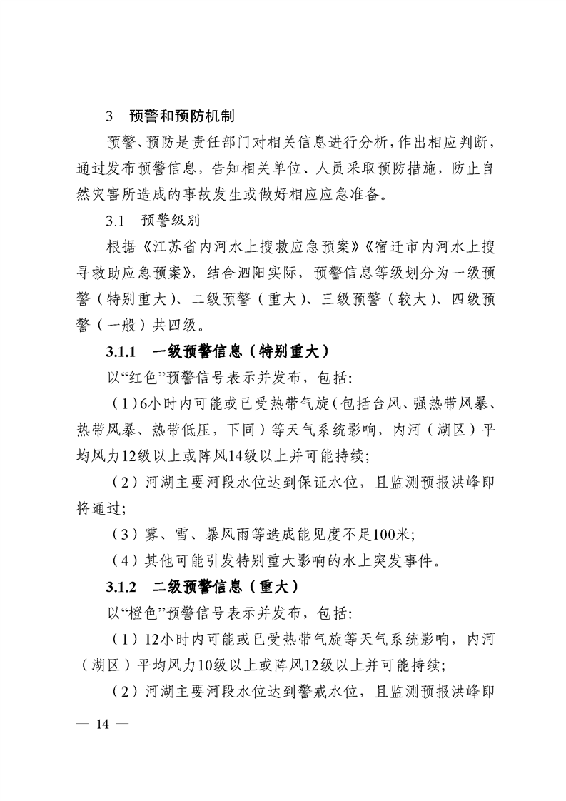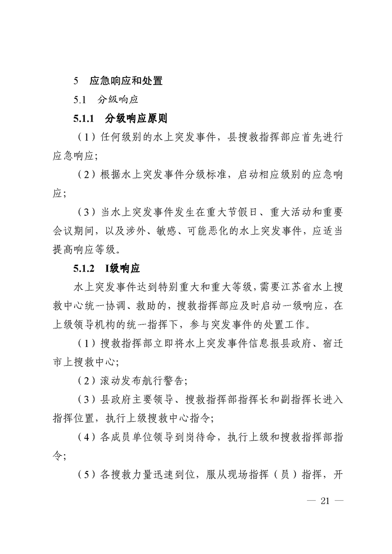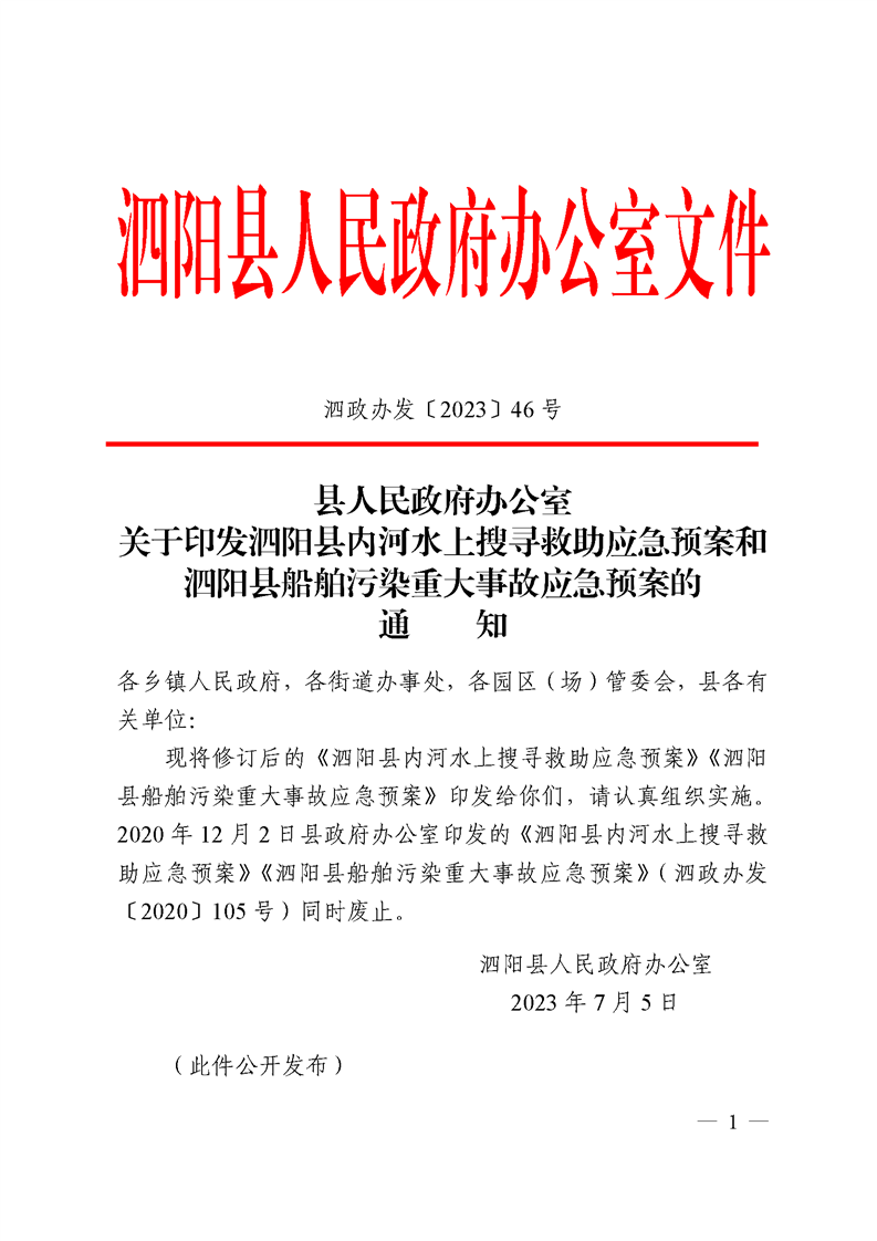 縣人民政府辦公室關于印發《泗陽縣內河水上搜尋救助應急預案》《泗陽縣船舶污染重大事故應急預案》的通知