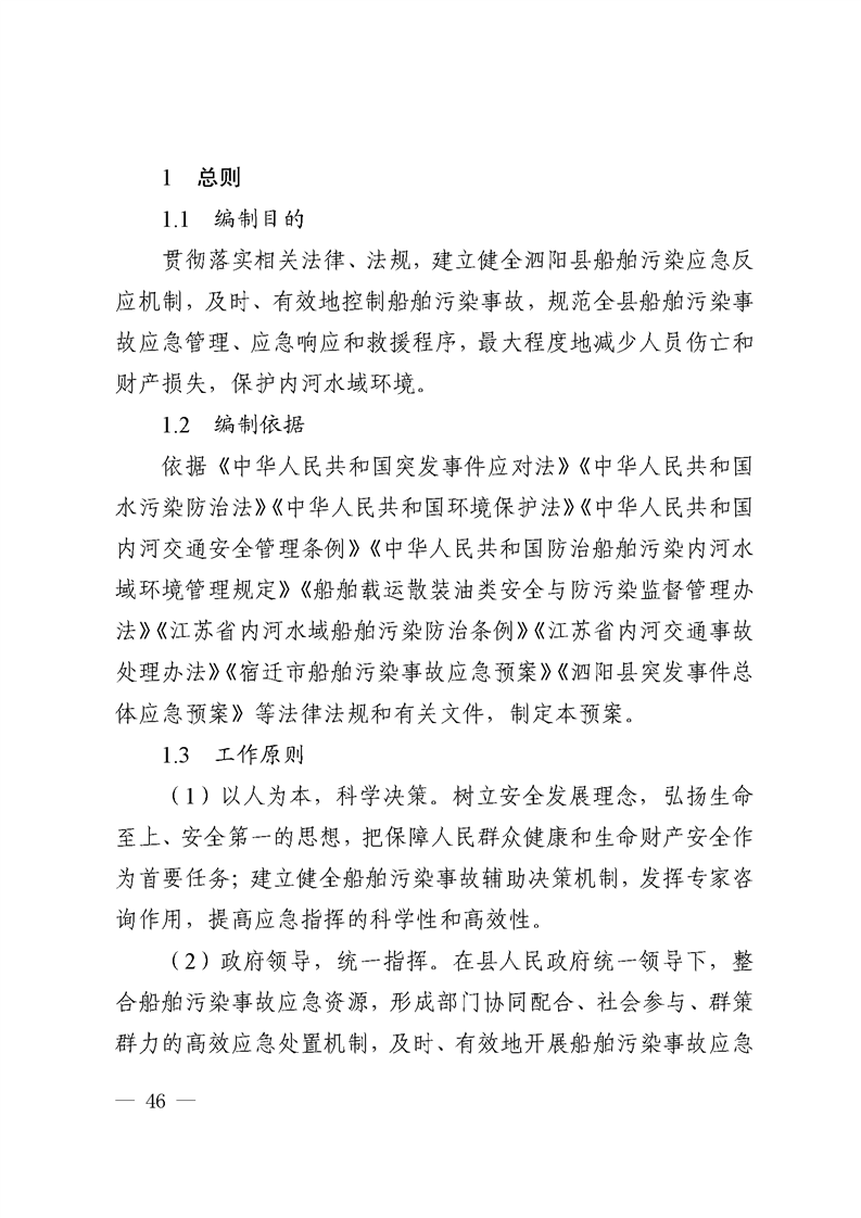 《泗陽縣內河水上搜尋救助應急預案》《泗陽縣船舶污染重大事故應急預案》政策解讀