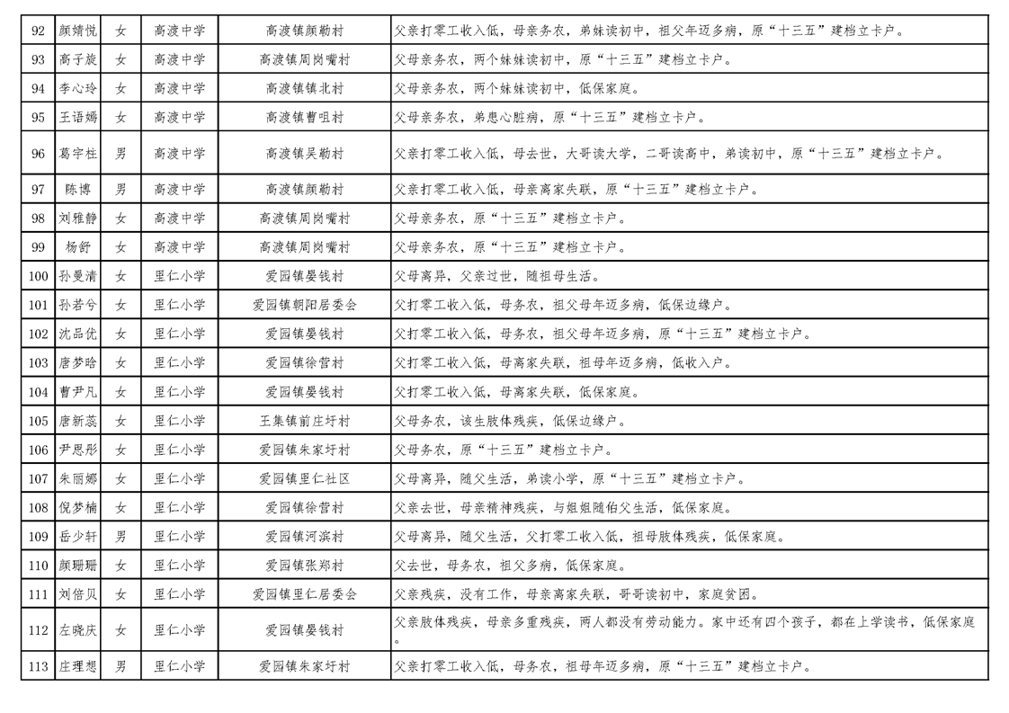 泗陽林中鳳凰教育基金會(huì)于10月份啟動(dòng)“林中鳳凰·幸福成長(zhǎng)”資助活動(dòng),經(jīng)公開通知、廣泛宣傳、本人申請(qǐng)、學(xué)校初核、基金會(huì)辦公室復(fù)審把關(guān)、集體研究等程序,擬對(duì)朱奎正等99名初中貧困學(xué)生予以資助每人500元,孫曼青等100名小學(xué)貧困生予以資助每人400元。現(xiàn)將擬資助對(duì)象情況公示如下,歡迎社會(huì)各界監(jiān)督。