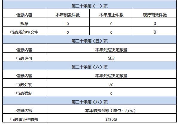 2022年,我局主動公開政府信息42條,每一條信息都通過嚴格審核把關后發布,無涉密信息。在誠信泗陽網站公示行政處罰、行政許可雙公示信用信息數據503條、20條。