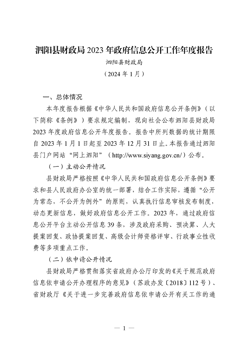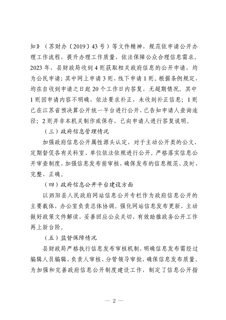 泗陽縣財政局2023年政府信息公開工作年度報告