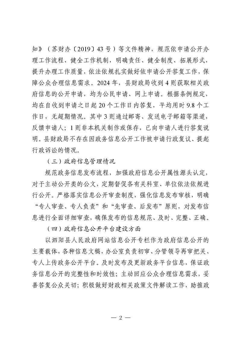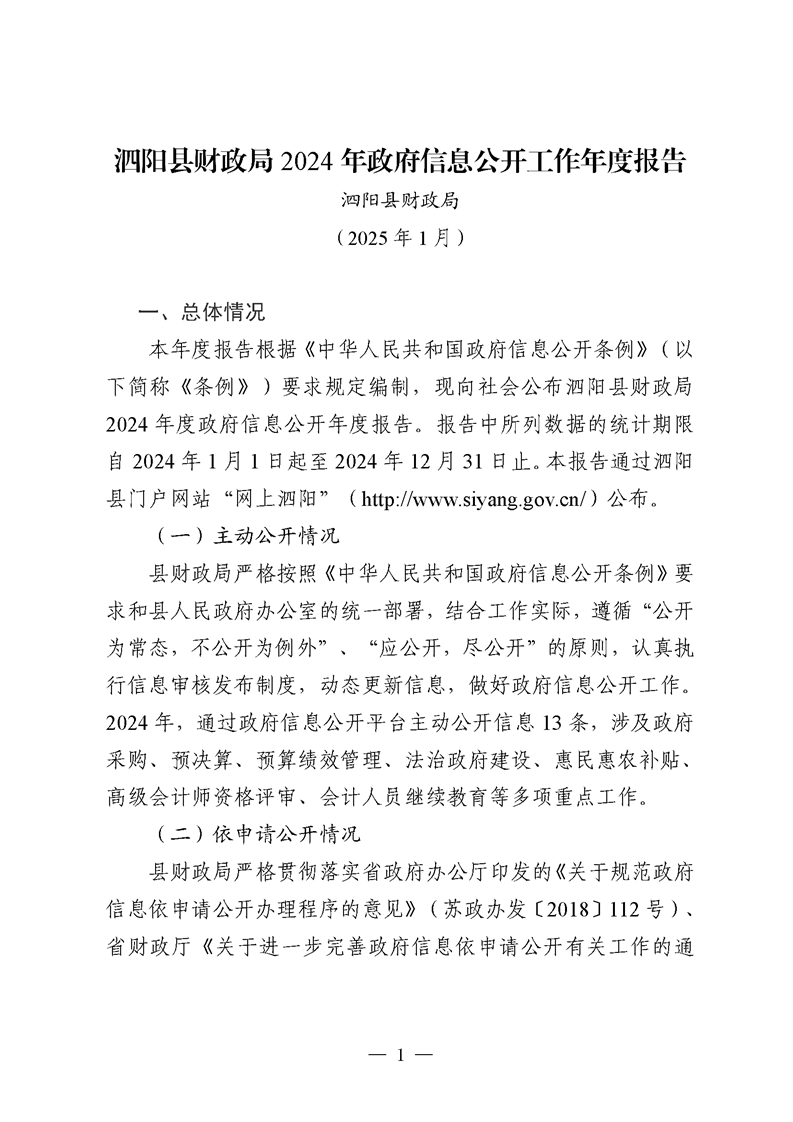 泗陽(yáng)縣財(cái)政局2024年政府信息公開(kāi)工作年度報(bào)告