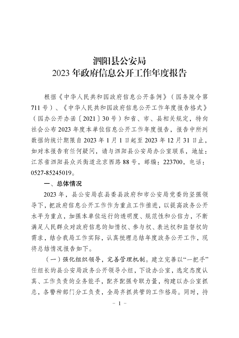泗陽縣公安局2023年政府信息公開工作年度報告