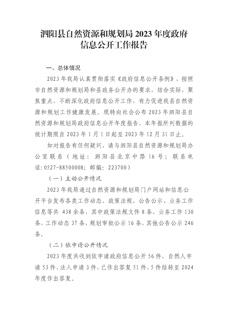 泗陽縣自然資源和規劃局2023年度政府信息公開工作報告