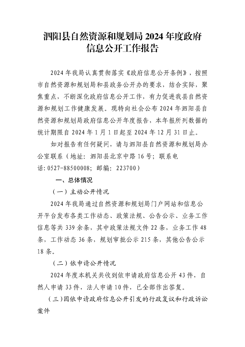 泗陽縣自然資源和規(guī)劃局2024年度政府信息公開工作報告