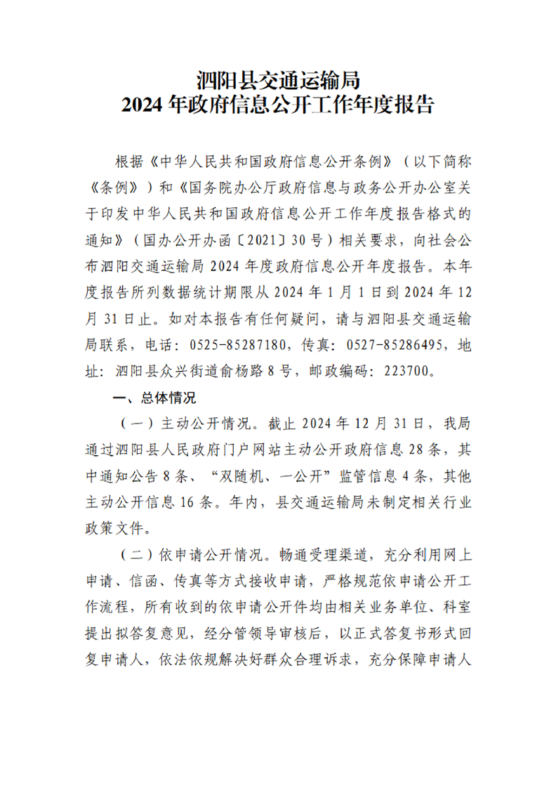 泗陽縣交通運(yùn)輸局2024年政府信息公開工作年度報(bào)告