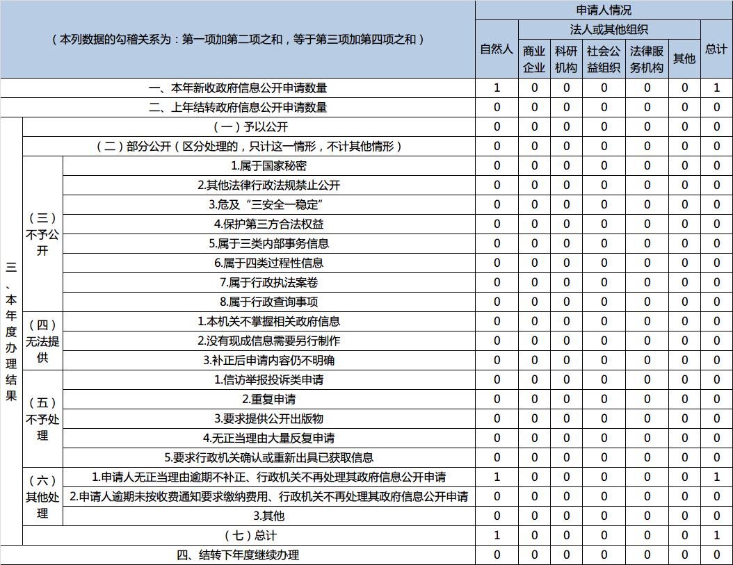 三、收到和處理政府信息公開申請情況