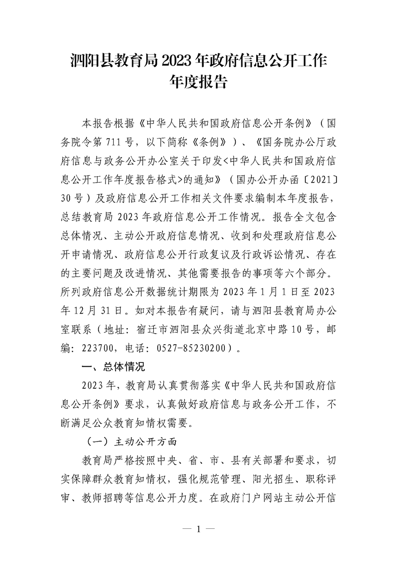 泗陽縣教育局2023年政府信息公開工作年度報(bào)告
