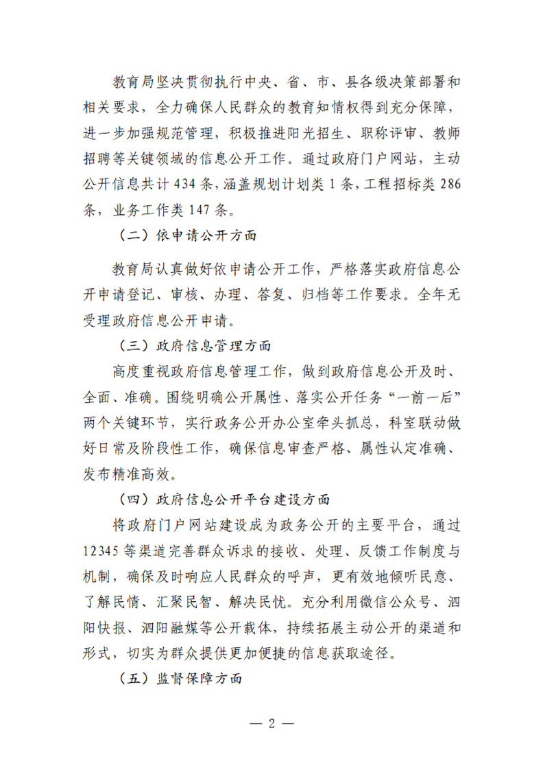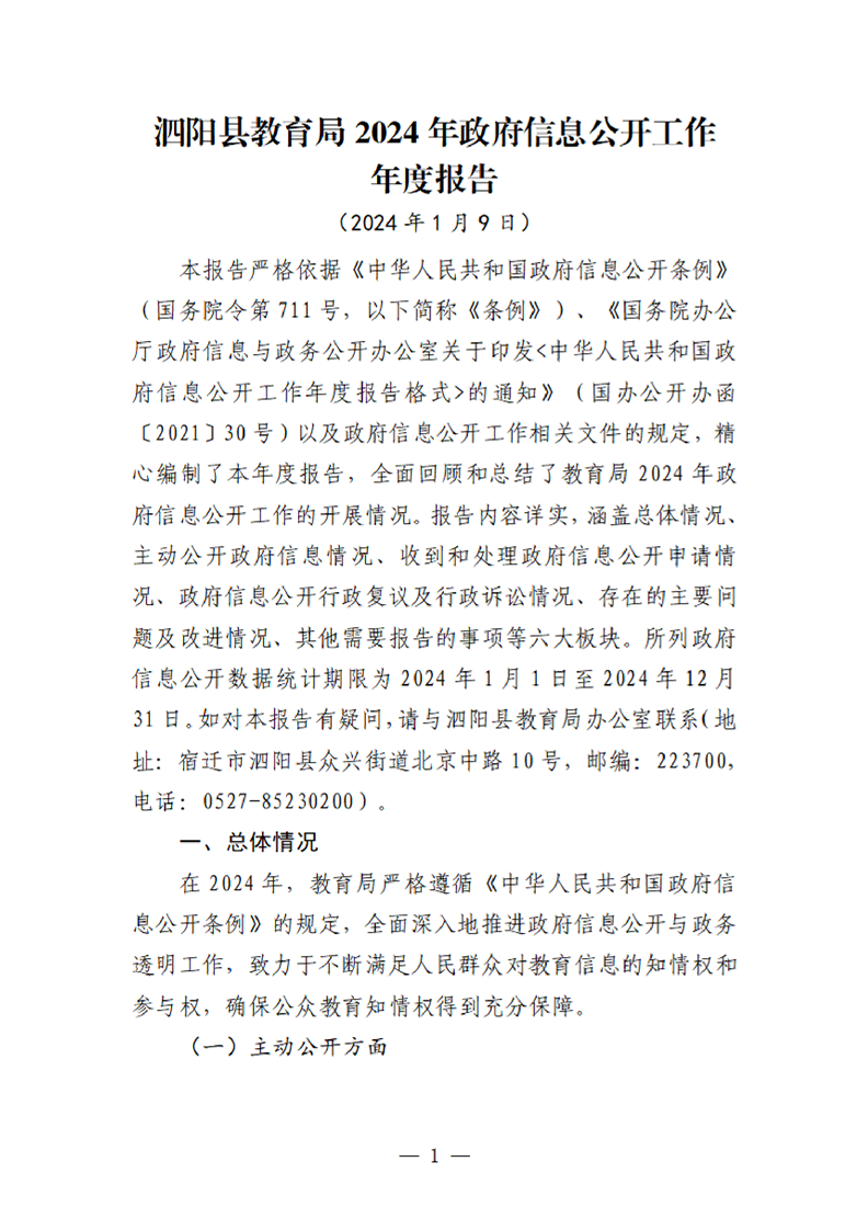 泗陽縣教育局2024年政府信息公開工作年度報告
