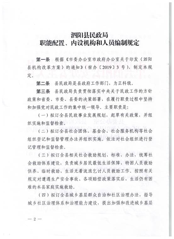 泗陽縣民政局職能配置、內(nèi)設(shè)機構(gòu)和人員編制規(guī)定