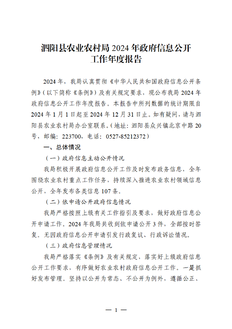 泗陽縣農(nóng)業(yè)農(nóng)村局2024年政府信息公開工作年度報告