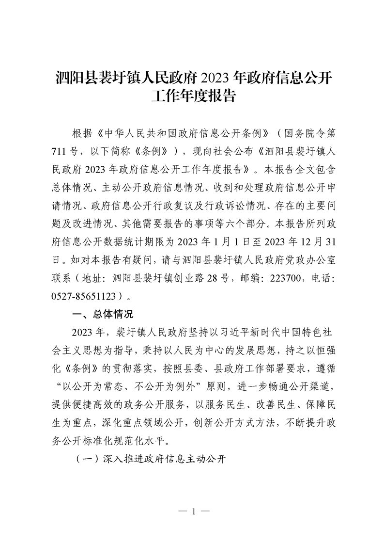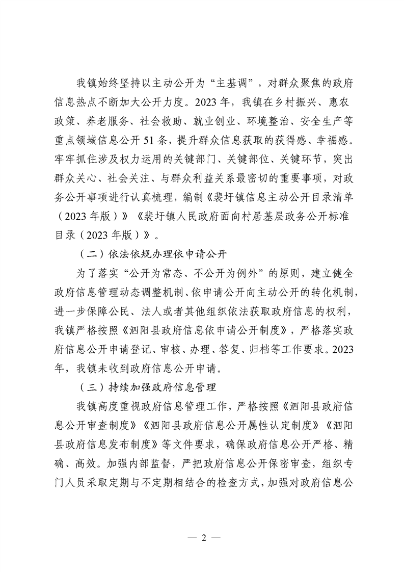 裴圩鎮人民政府2023年政府信息公開工作年度報告