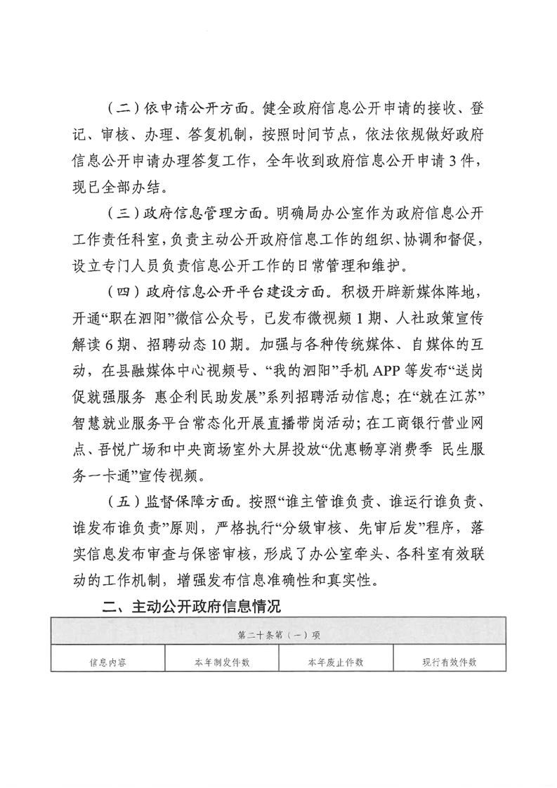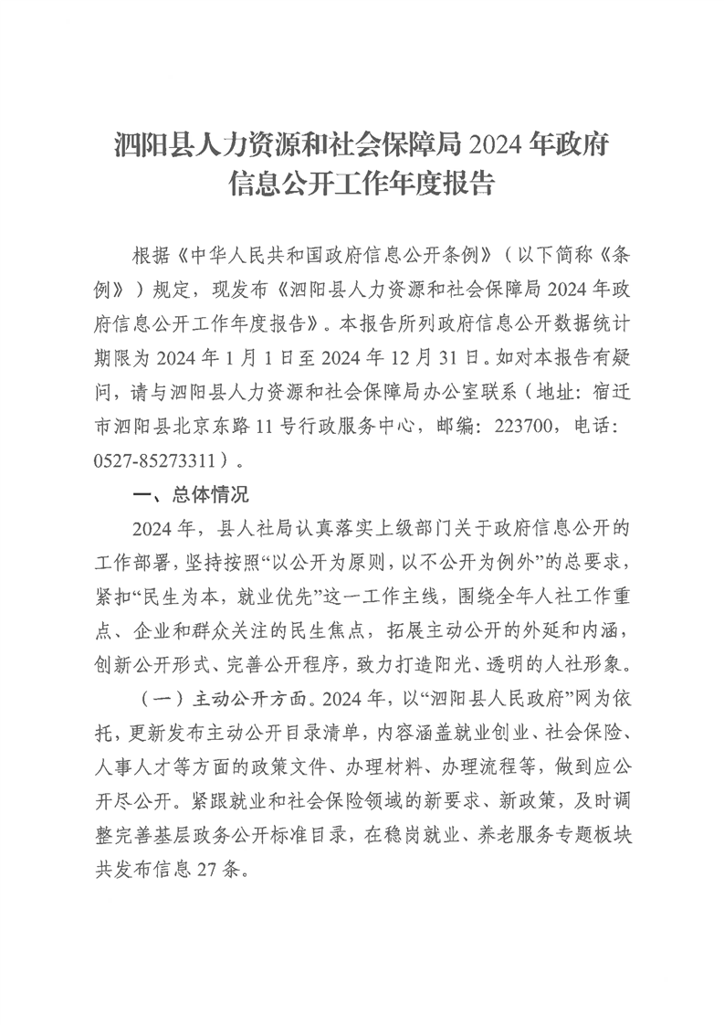 泗陽縣人力資源和社會保障局2024年政府信息公開工作年度報告