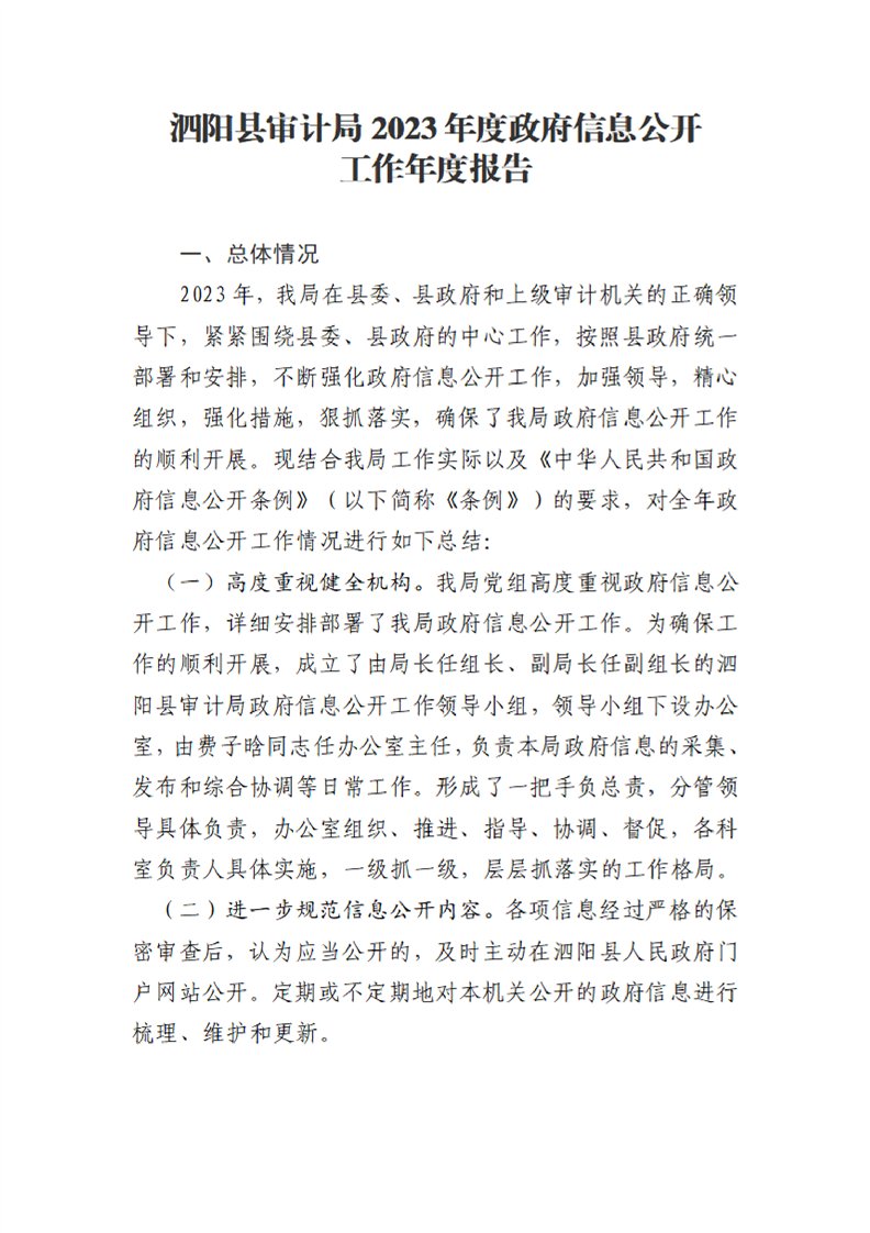 泗陽縣審計局2023年度政府信息公開工作年度報告