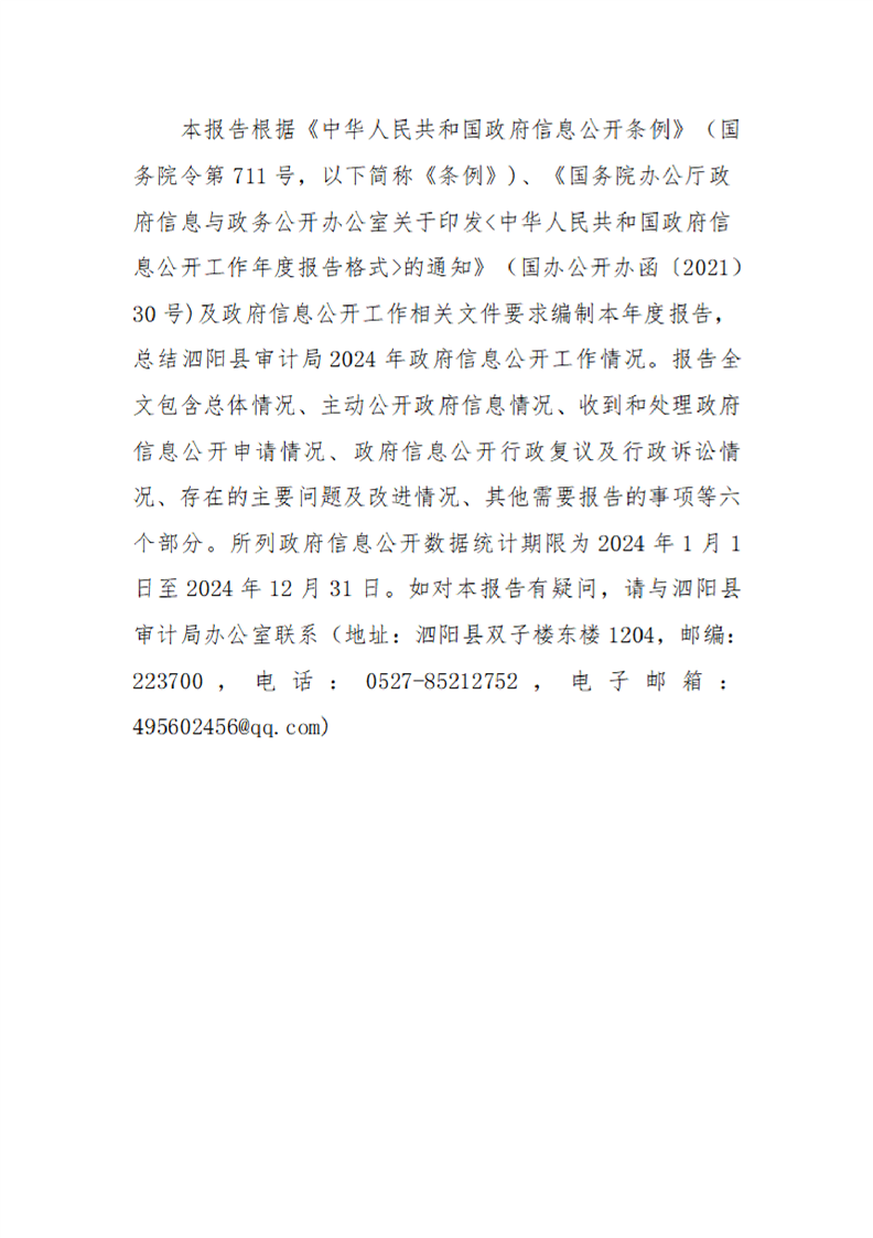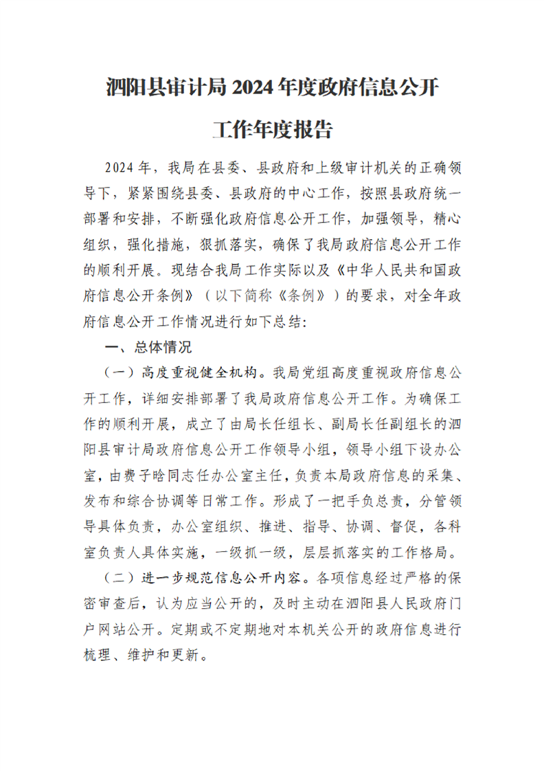 泗陽(yáng)縣審計(jì)局2024年政府信息公開(kāi)工作年度報(bào)告