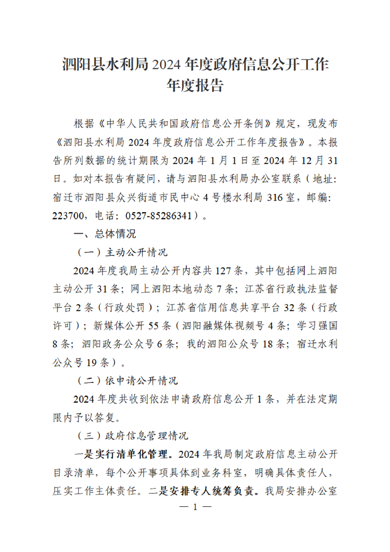 泗陽縣水利局2024年度政府信息公開工作年度報告