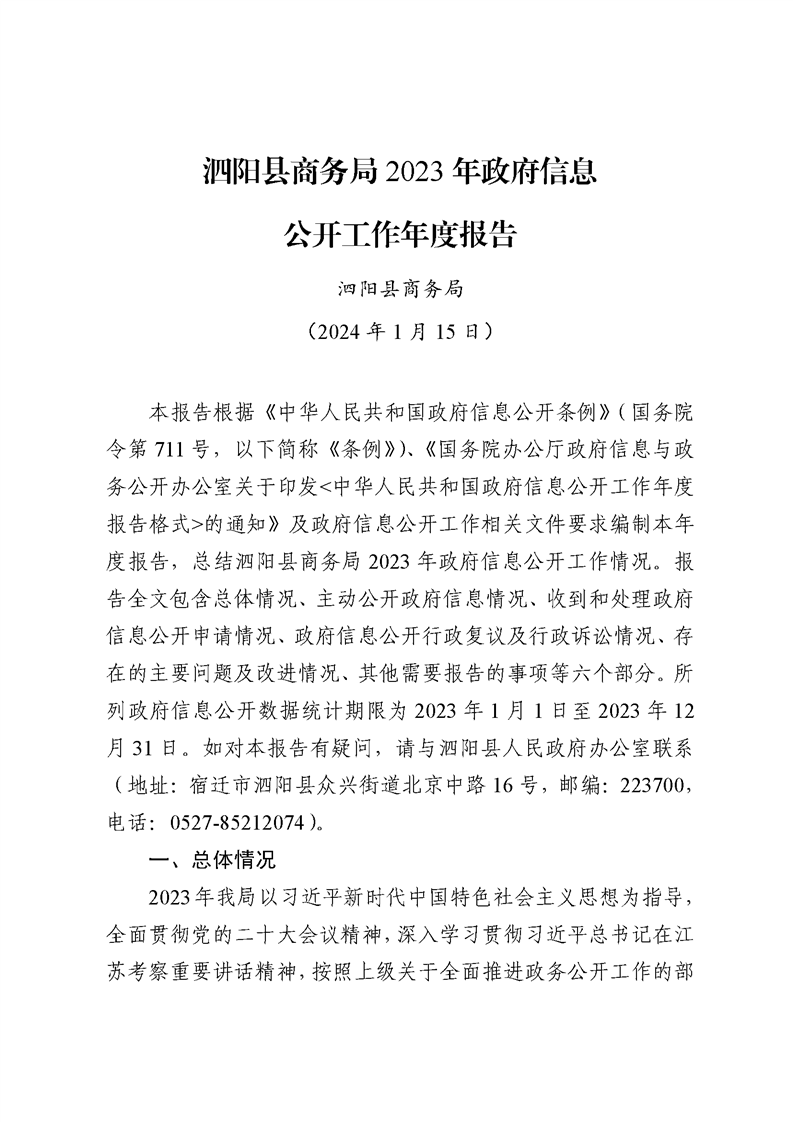 泗陽縣商務局2023年政府信息公開工作年度報告