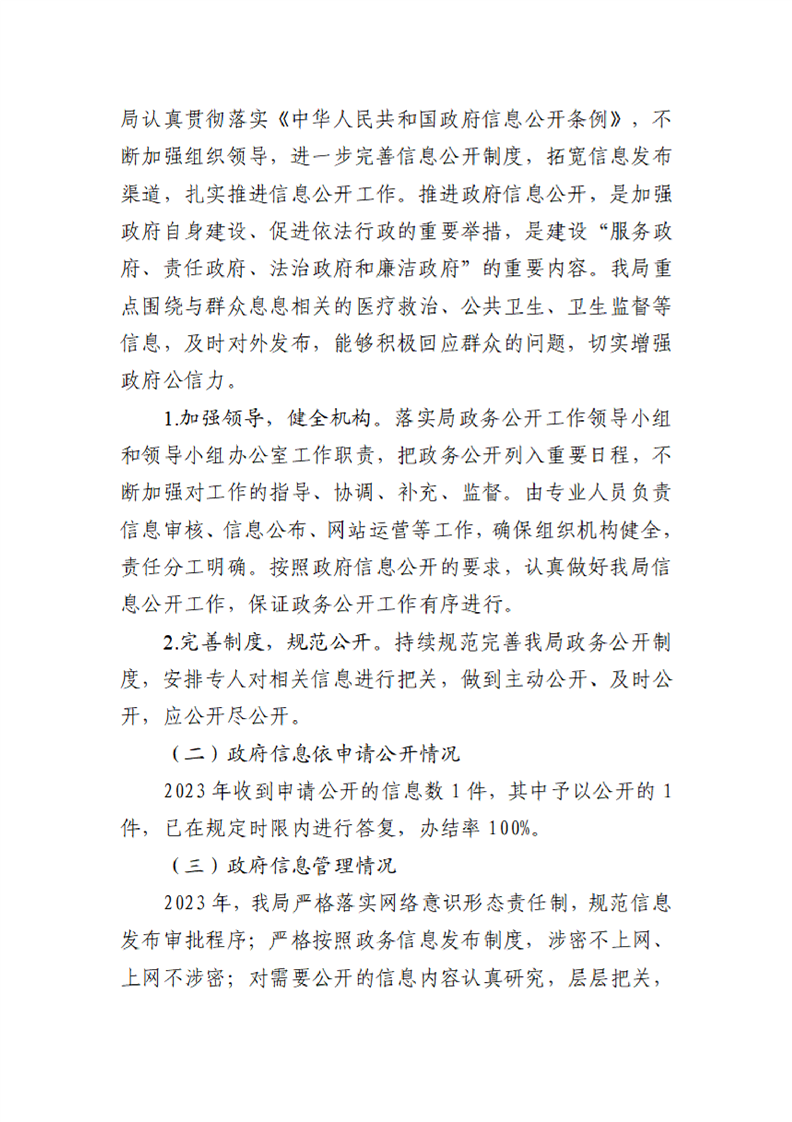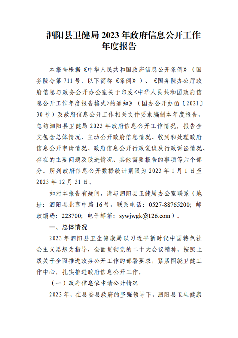 泗陽縣衛健局2023年政府信息公開工作年度報告