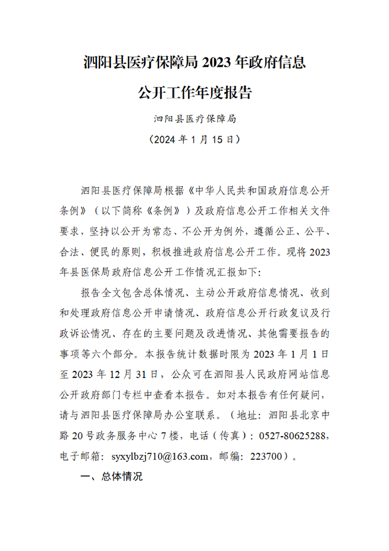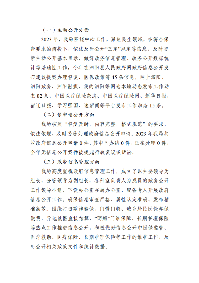 泗陽縣醫(yī)療保障局2023年政府信息公開工作年度報告