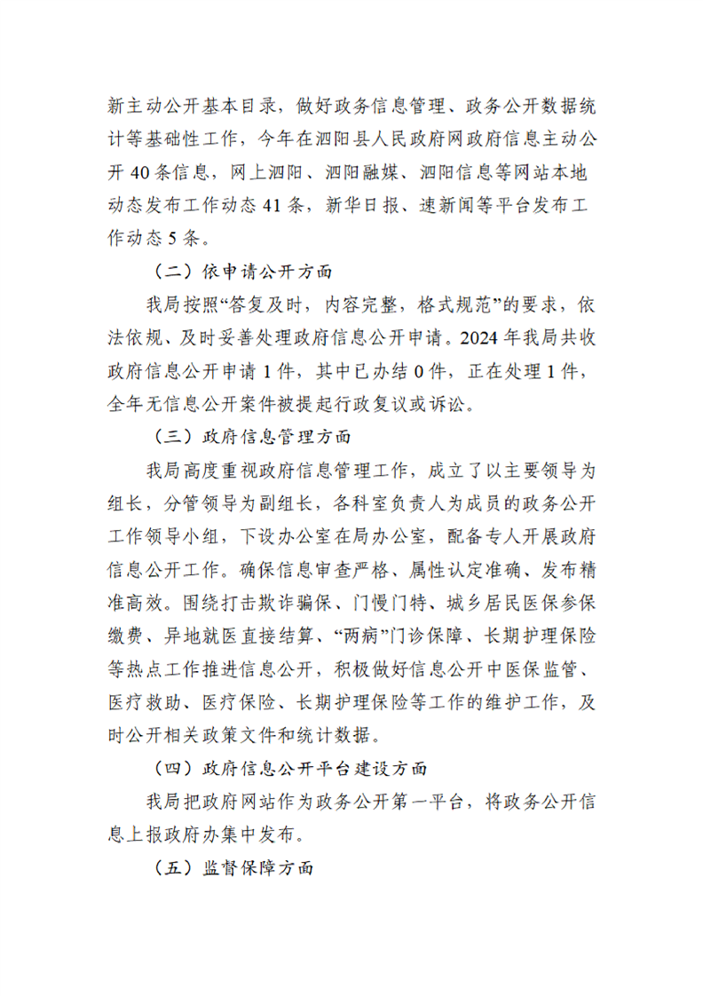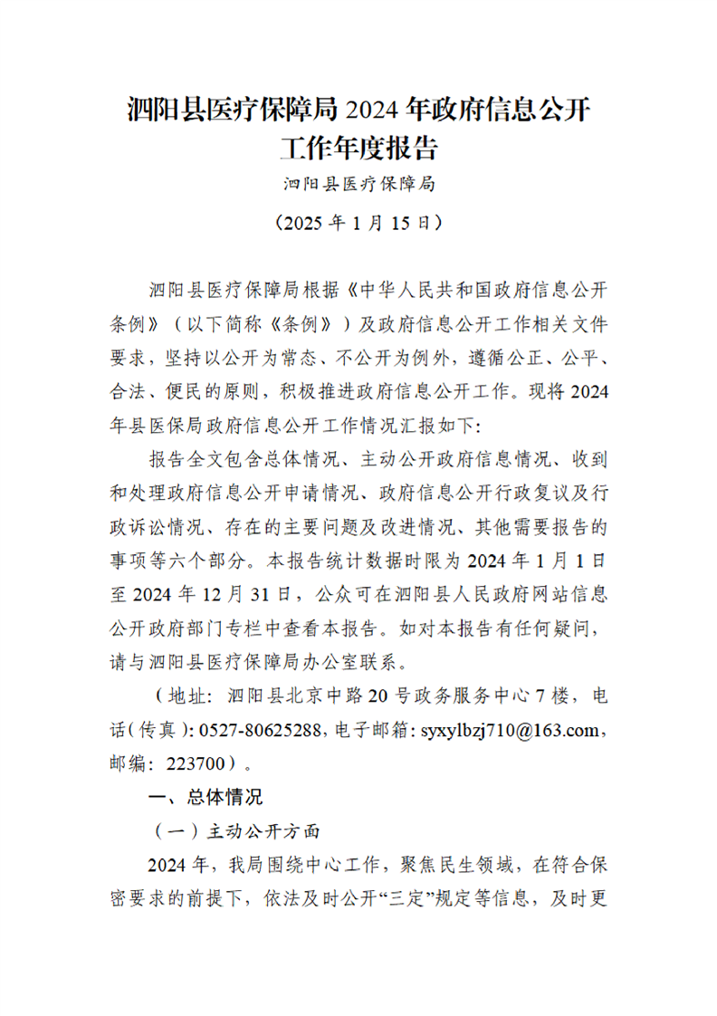 泗陽縣醫療保障局2024年政府信息公開工作年度報告